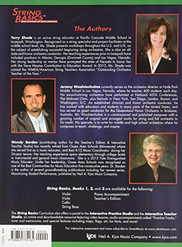 String Basics Book 3 by awardwinning authors Terry Shade, Jeremy Woolstenhulme, and Wendy Barden, continues with a strong pedagogy and stepbystep sequences of instruction preparing students for grade 3 performance literature and beyond. Book 3 opens with independent instrument tuning, then a critical review section allows students to be prepared for shifting & position work, new major & minor keys, the chromatic scale, and advanced note values & rhythm combinations. All are reinforced with technical exercises and a wide sampling of classical and cultural music. Book 3 concludes with vibrato development exercises specially designed for heterogeneous classrooms. Like with all String Basics method books, Book 3 features the popular Interactive Practice Studio and Interactive Teacher Studio, accessible on any Windows or Mac computer. Each student book and Teacher TMs Edition comes with a DVD containing video lessons and accompaniment Practice Tracks (also provided in the IPS and ITS).