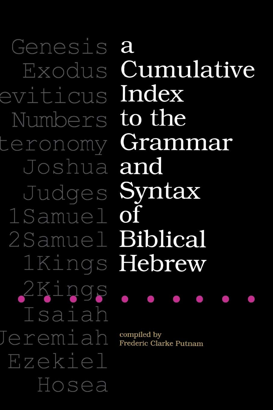 This book lists all textual references in thirteen works on the grammar and syntax of Biblical Hebrew, including several that are not indexed in themselves. This allows someone studying a text to look up that reference (in canonical order) and find all of the places in these works where that passage is mentioned, so that the student of TANAK/Hebrew Bible does not need to look through each index ad seriatim. It encompasses the entire TANAK, including the Aramaic portions.