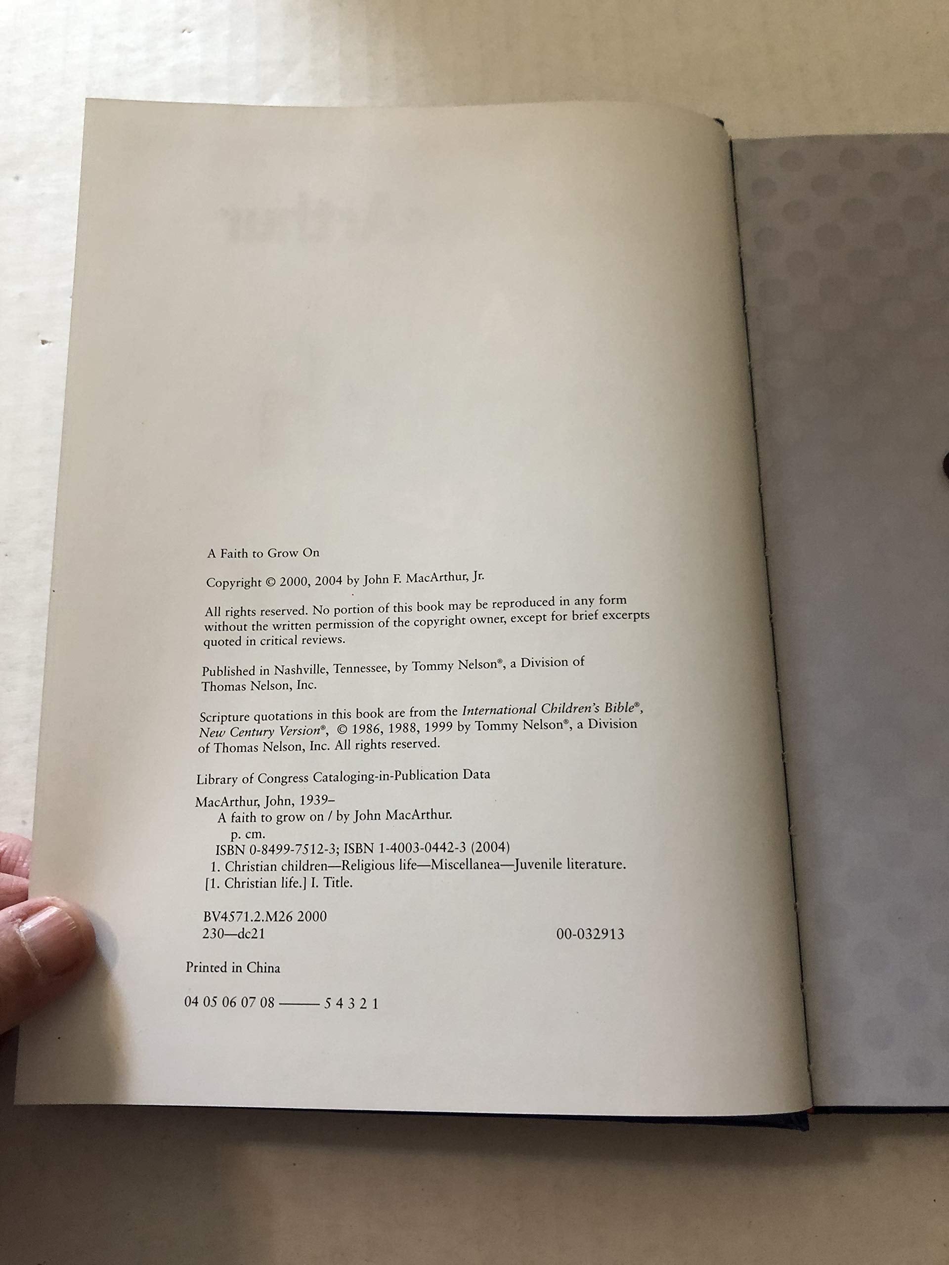 - Q: What is 'A Faith to Grow on' about? A: 'A Faith to Grow on' is an inspiring devotional by John MacArthur designed to help children navigate their faith journey after accepting Christ. It addresses common questions children may have and presents foundational Christian doctrines in an accessible way.