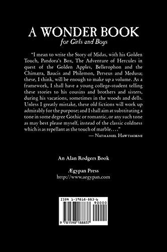 "I mean to write the Story of Midas, with his Golden Touch, Pandora's Box, The Adventure of Hercules in quest of the Golden Apples, Bellerophon and the Chimra, Baucis and Philemon, Perseus and Medusa; these, I think, will be enough to make up a volume. As a framework, I shall have a young collegestudent telling these stories to his cousins and brothers and sisters, during his vacations, sometimes in the woods and dells. Unless I greatly mistake, these old fictions will work up admirably for the purpose; and I shall aim at substituting a tone in some degree Gothic or romantic, or any such tone as may best please myself, instead of the classic coldness which is as repellant as the touch of marble. . . ." Nathaniel Hawthorne