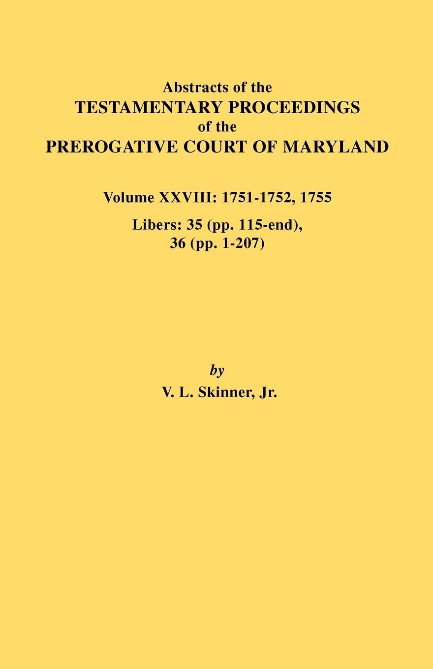 The work at hand marks the twentyeighth volume in this continuing series. Volume XXVIII consists of testamentary abstracts for the balance of 175152 and part of 1755. (Researchers will find the years 175053 covered in Volumes XXVI and XXVII.) In all, this book refers to an additional 7,000 colonial inhabitants of the Province of Maryland. For the most part, the transcriptions state the names of the principals (testators, heirs, guardians, witnesses, administrators, and so forth), as well as details of bequests, names of slaves, appraisers, and more.