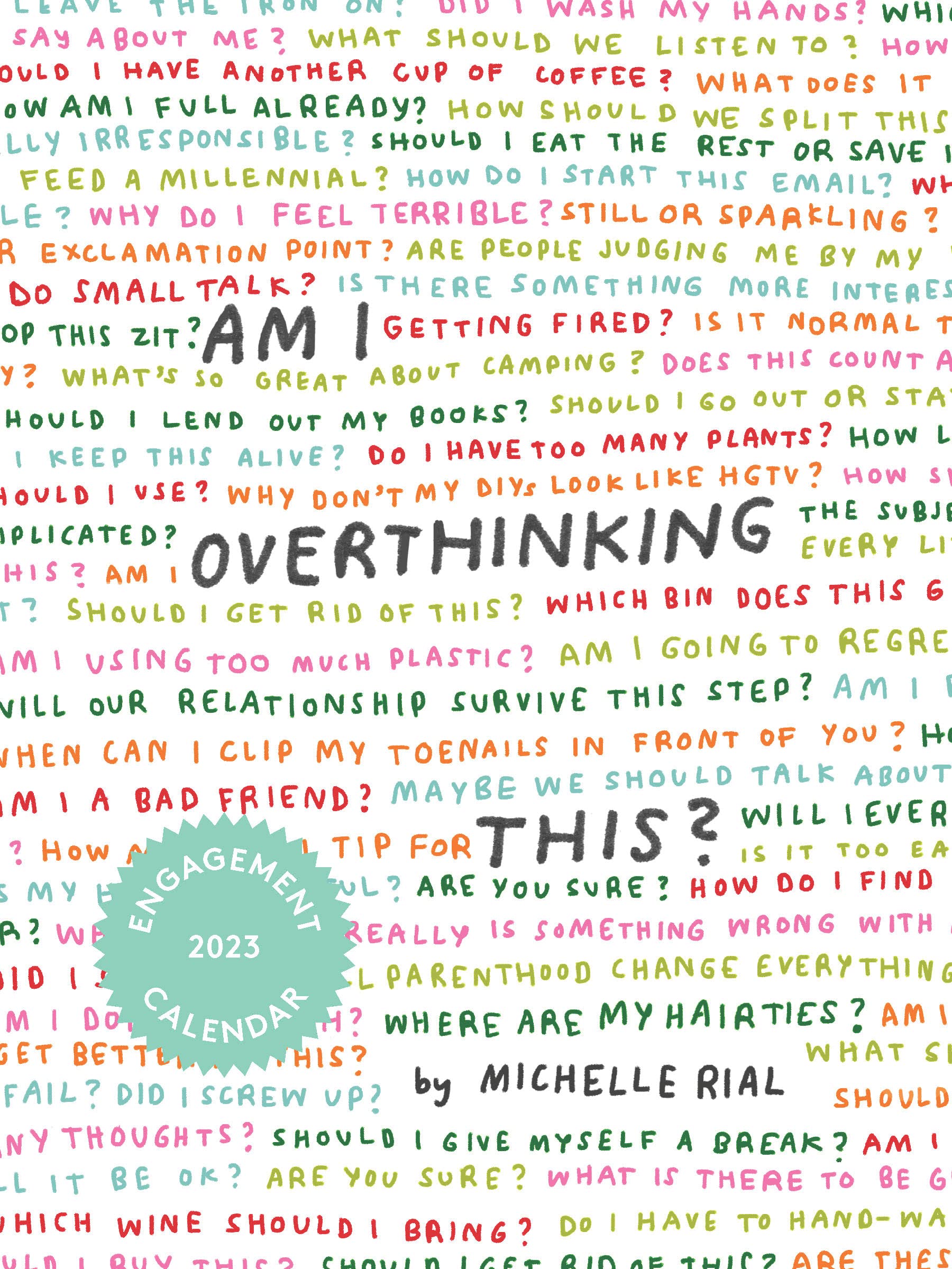 Try not to overthink it. Witty and iconic illustrations from Am I Overthinking This? enhance every week in this weekly engagement calendar featuring Michelle Rial's signature charts about overthinking.For anyone trying not to overthink their plans, this funny and charming engagement calendar offers a weekly dose of uplifting humor. This engagement calendar features the beloved artwork of Michelle Rial, author of Am I Overthinking This?, that is bound to bring overthinkers comic relief as they try to figure out their plans.With Rial's signature, notsoscientific charts, this calendar proves that even life's simplest questions don't always have easy answers.BELOVED AUTHOR: This calendar offers fans of Michelle Rial and her relatable takes on stress, anxiety, and daily life a new, exciting way to enjoy her beloved artwork.PERFECT SOLUTION: This 'overthinking' themed calendar is a smart and uplifting accessory for organizing commitments. Those looking to organize their many plans, goals, and thoughts relating to work, exercise, family time, social activities, and more will find the perfect solution in this portable and funtouse calendar.PLASTICFREE MATERIALS: 100% plasticfree packaging and product!Perfect for: Overthinkers Busy people Organization lovers Selfcare enthusiasts Fans of Michelle Rial and her unique charts People dealing with anxiety who want to find the funny side of it People who use humor to heal