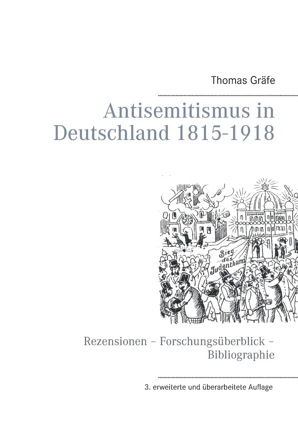Product Description Dieses Buch will ein Hilfsmittel fr die historische Antisemitismusforschung sein und richtet sich an Studenten, Historiker und interessierte Laien, die sich in das Sachgebiet einarbeiten wollen. Zu diesem Zweck sind in ihm Rezensionen, ein Forschungsberblick und eine Bibliographie zum Antisemitismus in Deutschland zwischen Wiener Kongress und Erstem Weltkrieg zusammengestellt worden. Der erste Teil bietet Rezensionen wichtiger Monographien, die zwischen 2007 und 2011 erschienen sind. Ausgewhlt wurden Arbeiten, die auf zentrale Forschungskontroversen verweisen, bisher weniger beachtete Teilbereiche oder Quellen erschlieen, neue Interpretationsangebote offerieren oder in methodischer Hinsicht neue Wege gehen. Im zweiten Teil folgt ein Forschungsberblick, der in mglichst konziser Form Ergebnisse, Hypothesen und Desiderate der neueren historischen Antisemitismusforschung vorstellt. Dabei soll auch ein Blick auf die Theorieangebote der Nachbarwissenschaften und den historiographiegeschichtlichen Wandel geworfen werden. Untersttzt wird die Darstellung durch ein sozial und politikgeschichtliches Tabellenwerk. Den Abschluss bildet eine Bibliographie mit ber 700 Titeln zum Antisemitismus in Deutschland whrend des 19. Jahrhunderts. About the Author Geboren 1976. 1997 2003 Studium von Geschichte, Englisch und Sozialwissenschaften an der Universitt Bielefeld und der Sussex University Brighton. 2003 Staatsexamen, 2001 04 studentische und wissenschaftliche Hilfskraft an der Universitt Bielefeld, seit 2005 Ttigkeit im ffentl. Dienst und als freier Autor. Von Thomas Grfe sind erschienen: Der Bismarck Mythos in der politischen Kultur des Wilhelminischen Kaiserreichs (2002, Neuaufl. 2014); Antisemitismus in Gesellschaft und Karikatur des Kaiserreichs. Gl' Politische Bilderbogen 1892 1901 (2005); Antisemitismus in Deutschland 1815 1918. Rezensionen Forschungsberblick Bibliographie (2007, 2.Aufl. 2010); Artikel "Max Bewer" und "Heinrich Pudor", in: Schsische Biografie (2008); Zwischen katholischem und vlkischem Antisemitismus. Die Bcher, Broschren und Bilderbogen des Schriftstellers Max Bewer (1861 1921), in: IASL 34, H.2 (2009), S. 121156; Modernisierung als "Entgermanisierung"? Walther Rathenau und der vlkische Schriftsteller Hermann Burte, in: ZGO 163 (2015), S. 245275.