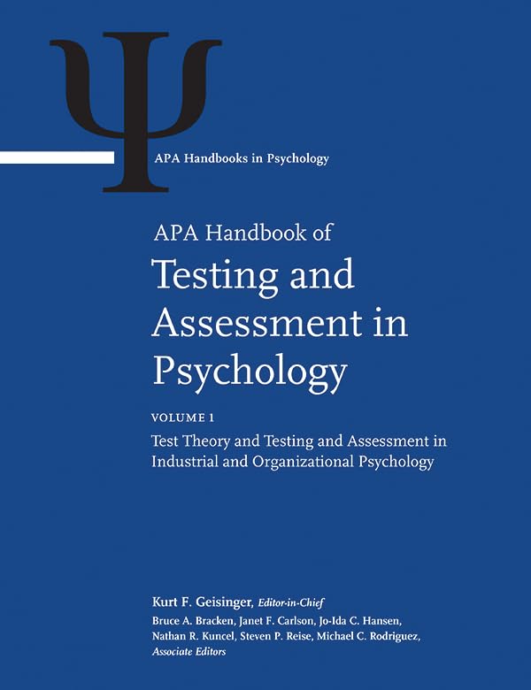 This threevolume handbook is a comprehensive presentation of the theory and application of tests in psychology and education.It begins with an indepth portrayal of psychometrics: the quantitative underpinning of testing. It then provides thorough, uptodate and informative chapters related to five general application areas of testing: industrial/organizational psychology clinical psychology (including health psychology) counseling psychology school psychology educational testing In each of these five areas, this handbook is probably the most comprehensive review of the use of testing and assessment in the subfield.