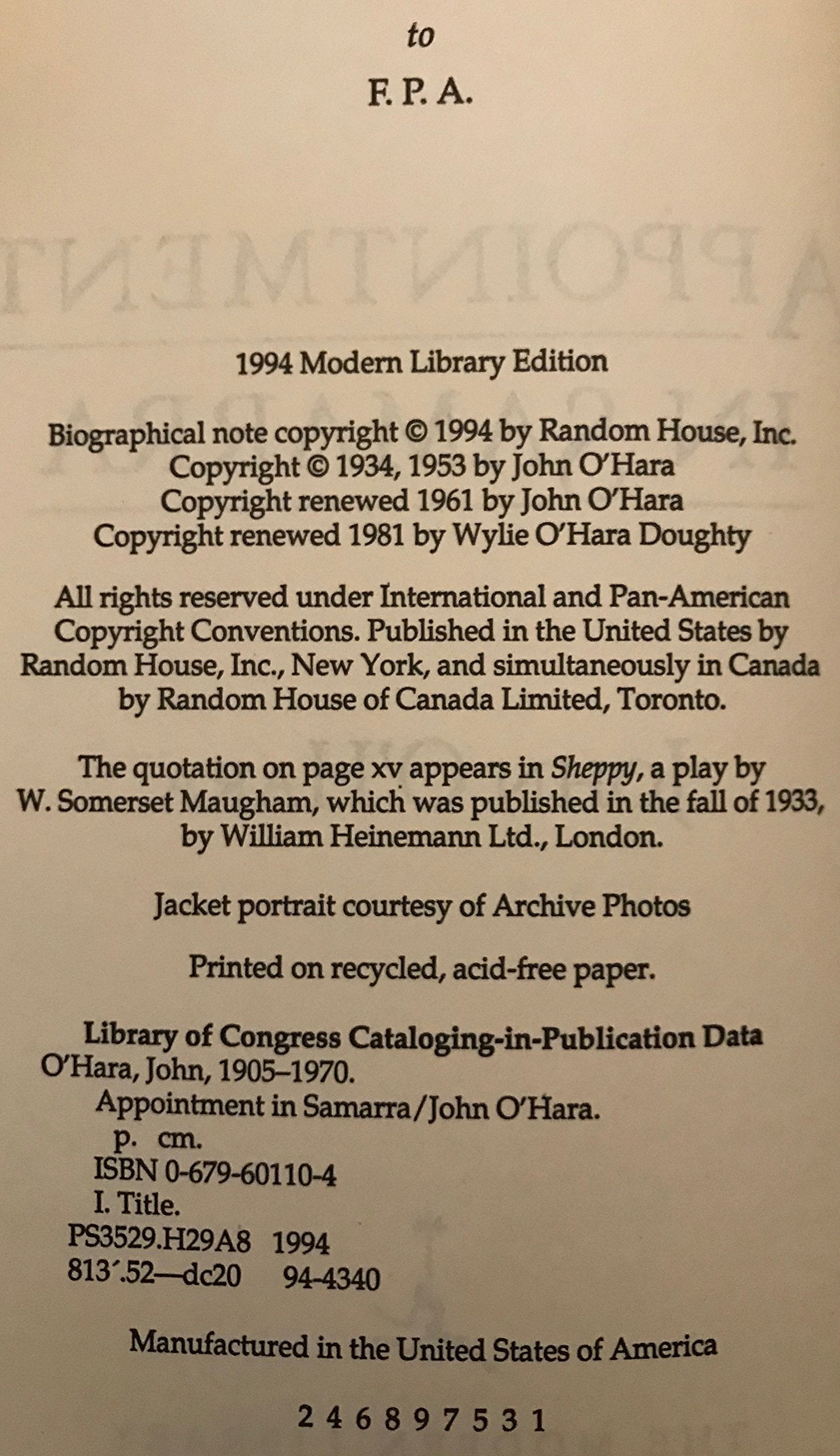 - Q: What is the publication date of this book? A: 'Appointment in Samarra' was published on May 17, 1994, as the first Modern Library Edition.