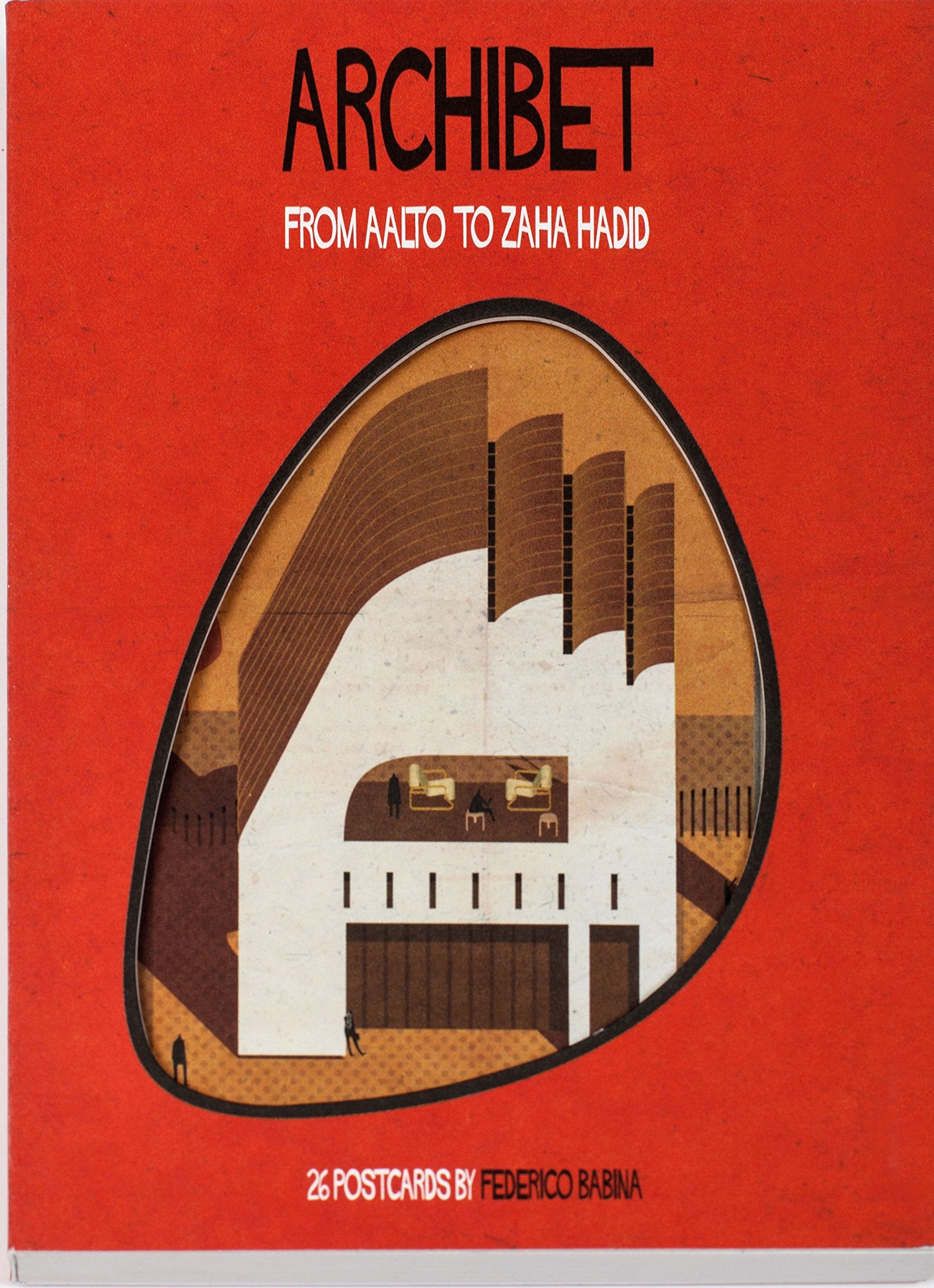- Q: What is included in the Archibet postcard collection? A: The Archibet postcard collection includes 26 detachable postcards, each representing a letter of the alphabet, illustrated in the style of famous architects.
