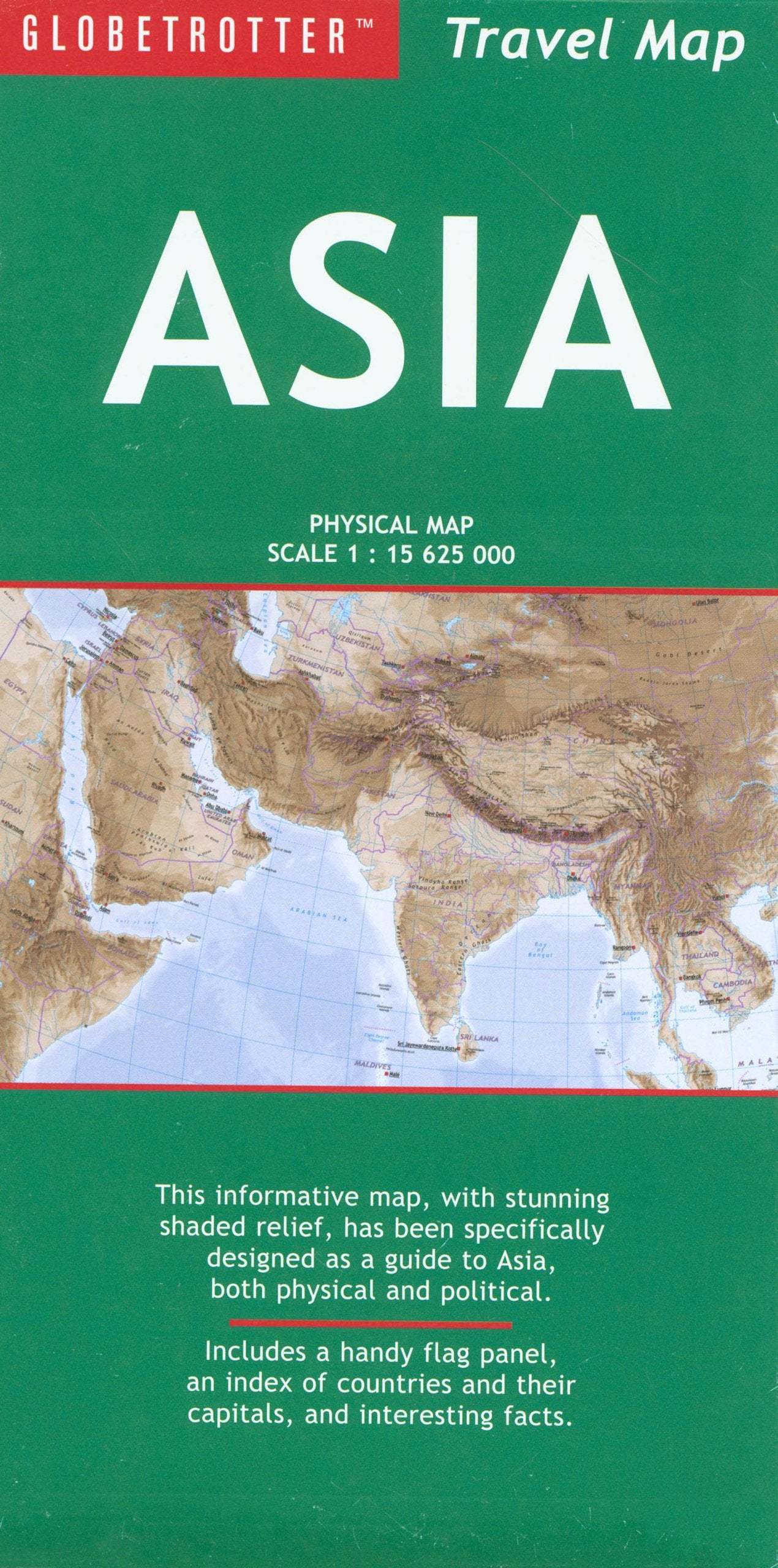 The Globetrotter Travel Map of Asia has been specifically designed as guides to both the physical and the political continent. This informative map, with stunning shaded relief, features a largescale physical projection of the continent and a detailed political map complete with uptodate statistics. The maps are ideal for home, school and office use, and contain an index of countries and their capitals, a handy flag panel and interesting country facts.