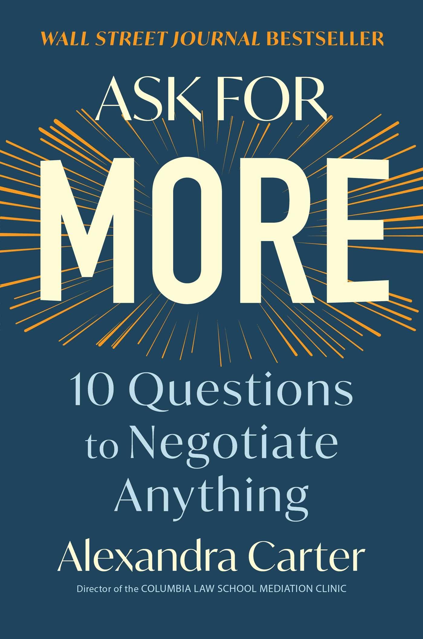 An instant Wall Street Journal bestseller and a joy to read (Douglas Stone and Sheila Heen, authors of Difficult Conversations), Ask for More shows that by asking better questions, you get better answersand better results from any negotiation.Negotiation is not a zerosum game. Its an essential skill for your career that can also improve your closest relationships and your everyday life. Still, people often shy away from it, feeling defeated before theyve even started. In this groundbreaking new book on negotiation, Alexandra CarterColumbia law professor and mediation expert who has helped students, business professionals, the United Nations, and moreoffers a straightforward accessible approach anyone can use to ask for and receive more.Weve been taught incorrectly that the loudest and most assertive voice prevails in any negotiation, or otherwise, both sides compromise, ending up with less. Instead, Carter shows that you get far more value by asking the right questions of the person youre negotiating with than you do from arguing with them. She offers a simple yet powerful tenquestion framework for successful negotiation where both sides emerge victorious. Carters proven method extends far beyond one yes and instead creates value that lasts a lifetime.Ask for More is like having a negotiation coach in your corner (Linda Babcock, author of Women Dont Ask) and gives you the tools to bring clarity and perspective to any critical discussion, no matter the topic.