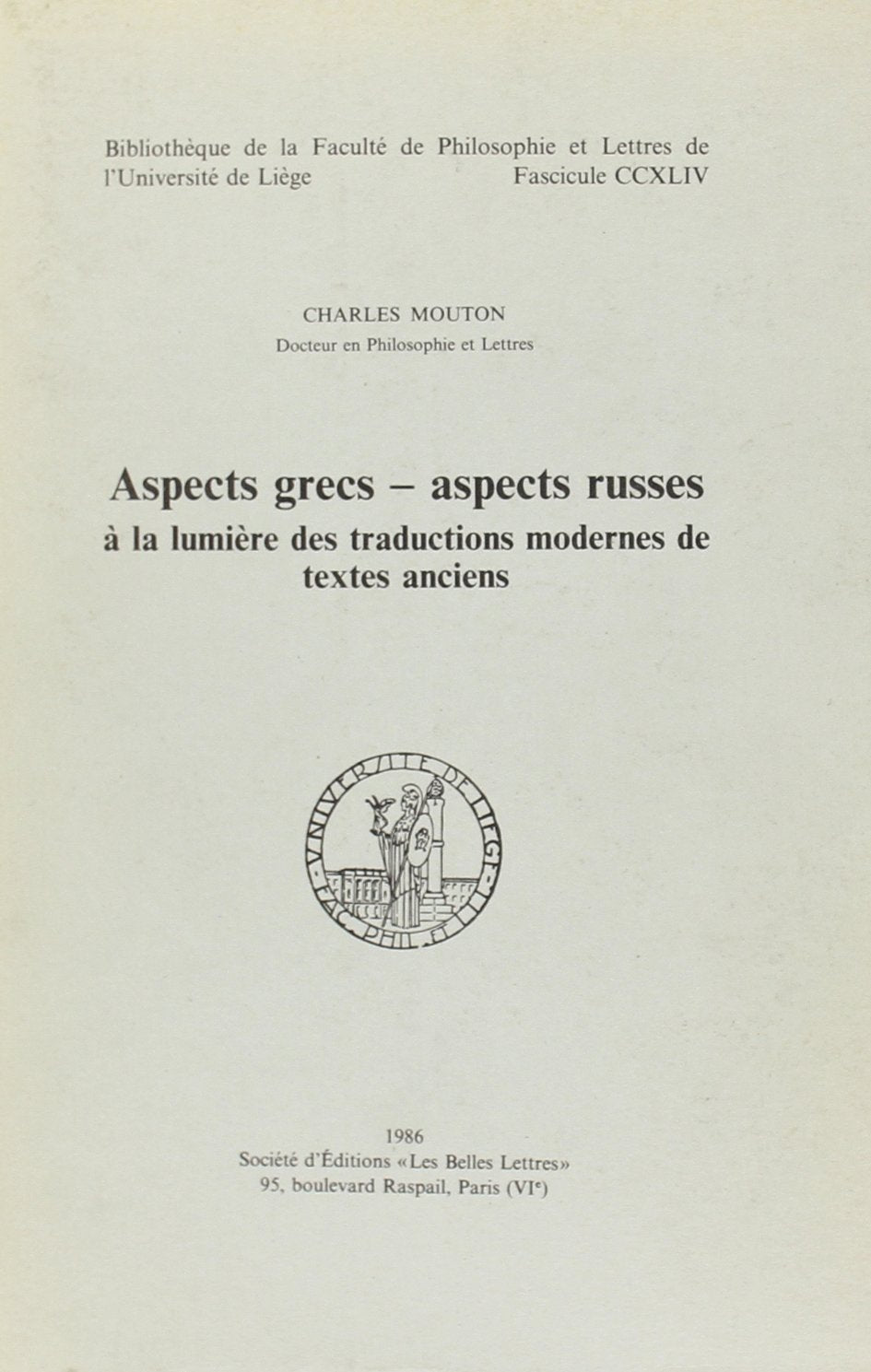 Aspects grecs, aspects russes la lumire des traductions modernes de textes anciens,Used