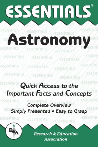 REAs Essentials provide quick and easy access to critical information in a variety of different fields, ranging from the most basic to the most advanced. As its name implies, these concise, comprehensive study guides summarize the essentials of the field covered. Essentials are helpful when preparing for exams, doing homework and will remain a lasting reference source for students, teachers, and professionals. Astronomy includes the historical perspective of astronomy, sky basics and the celestial coordinate systems, a model and the origin of the solar system, the sun, the planets, Kepler's Laws of Planetary Motion, planetary satellites, asteroids, eclipses, tides, stars, time, and binoculars and telescopes.