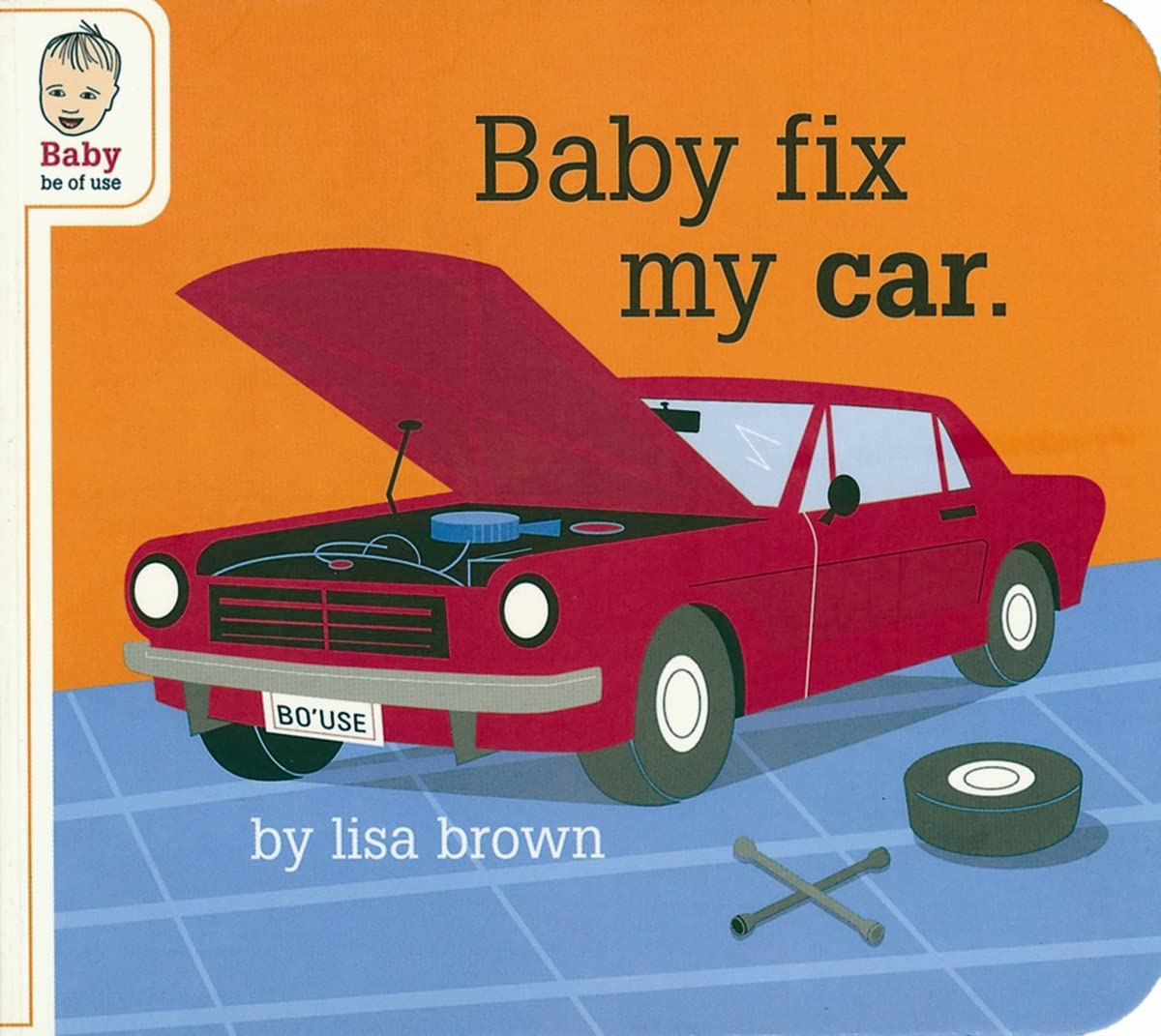 Too many of us allow our infant sons and daughters to lay about idlynapping, drinking milk and sometimes 'turning over.' Why not put them to work? Their small hands are perfect for those hard to reach plugs and caps found under car hoods. This instructional board book teaches your infant to be useful, at long last.Watch your tots enjoy the shapes and colors, all the while learning how to change oil. Fabulous!