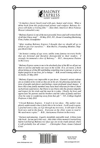 Sandy Garnett's debut book derives from the long lost 500 page handwritten journal he kept during his four month stint in a New England rehab and a halfway house in Mesa, Arizona, the summer after his freshman year at St. Lawrence University in upstate New York. Baloney Express documents the coming of age story of a 19yearold in trouble. On the horizon of this desert walkabout appears a wise, weathered cowboy oilman, who helps Garnett to see clearly, live simply, staighten his life out and pursue his dream of making art for a living. Ripe with ruthless selfdiscovery and observational wit as the journal writer grows deeply through this life changing experience, 'Baloney' reaches well beyond the pale of traditional recovery literature into the labyrinthian corridors of contemporary adolescence, whose archetypal mentors shine the best of their lives forward. The author's passage from a selfdestructive college freshman to a healthy son, brother and ambitious young artist underscores this uplifting story while exploring the resilience of a decent family, whose trials and tribulations are a testament to the rangy, stubborn optimism that echoes and carries the American spirit.