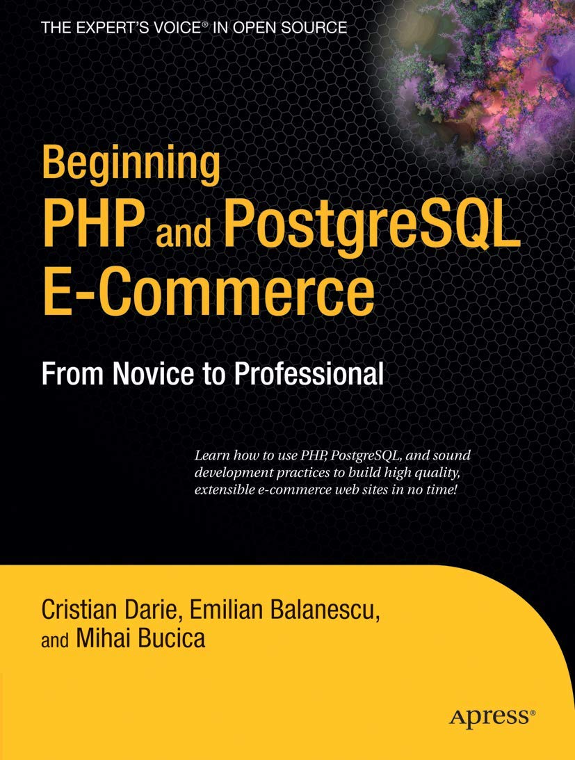 The First Book To Show Readers How To Create A Complete Ecommerce Driven Website Using Two Of The Most Popular Open Source Technologies, Php And Postgresqladapted From The Strong Selling Beginning Php 5 And Mysql Ecommerce, This Book Is Based On A Proven And Popular Instructional Model.Postgresql, Long The Second Most Popular Open Source Database In The World, Has Seen A Significant Resurgence In Interest Throughout 2005 Due To Software Enhancements And Considerable Capital Injections. It Stands To Reason Already Strong Interest In This Database Will Continue To Grow For The Foreseeable Future.