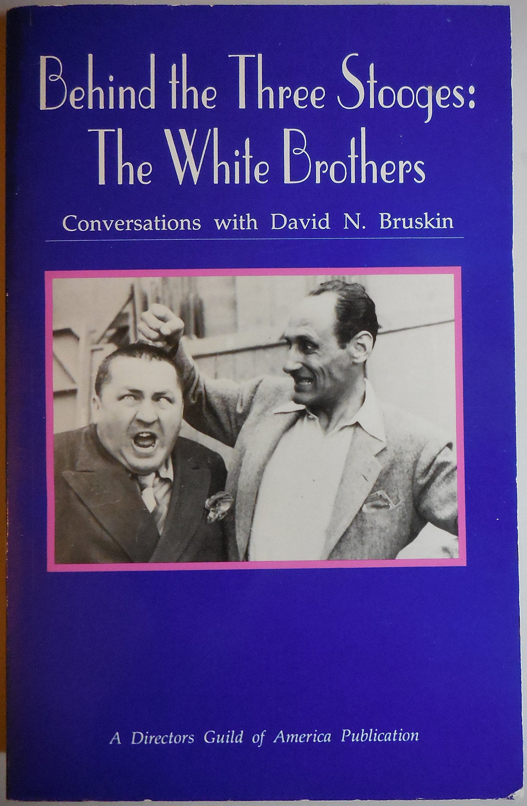 - Q: What is the condition of the book 'Behind the Three Stooges: The White Brothers'? A: The book is in good condition, with some wear and rubbing on the covers and a creased spine, but it features a tight binding and clean pages.