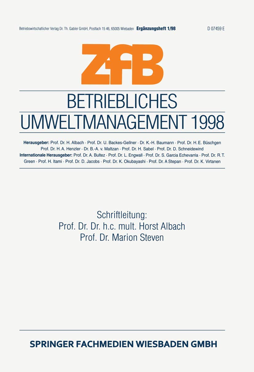 Product Description Die Beitrge dieses Buches, die sowohl empirische Studien als auch quantitative Modelle und theoretische Analysen auf hohem Niveau umfassen, zeigen das breite Spektrum auf, in dem derzeit in dieser noch recht jungen Teildisziplin der Betriebswirtschaftslehre gearbeitet wird. Ihre Themen reichen von Fragen der Umweltethik, des strategischen Umweltmanagement und der Absatztheorie ber die umweltorientierte Produktionstheorie und die Umweltkostenrechnung zu Problemen der Entsorgung un der Abfallvermeidung. Verzeichnis: Das Buch behandelt aktuelle Entwicklungen bei der Forschung, besonders die gesellschaftliche Dimension des Umweltmanagements wie zum Beispiel das StakeholderKonzept. About the Author Prof. Dr. Dr. h.c. mult. Horst Albach ist Professor der Betriebswirtschaftslehre an der HumboldtUniversitt Berlin und Direktor am Wissenschaftszentrum Berlin. Prof. Dr. Marion Steven lehrt Wirtschaftswissenschaften auf dem Lehrstuhl fr angewandte BWL I (Produktionswirtschaft) an der RuhrUniversitt Bochum