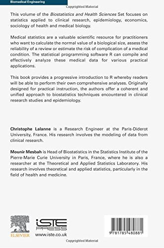 Biostatistics and ComputerBased Analysis of Health Data Using the R Software addresses the concept that many of the actions performed by statistical software comes back to the handling, manipulation, or even transformation of digital data.It is therefore of primary importance to understand how statistical data is displayed and how it can be exploited by software such as R. In this book, the authors explore basic and variable commands, sample comparisons, analysis of variance, epidemiological studies, and censored data.With proposed applications and examples of commands following each chapter, this book allows readers to apply advanced statistical concepts to their own data and software. Features useful commands for describing a data table composed made up of quantitative and qualitative variables Includes measures of association encountered in epidemiological studies, odds ratio, relative risk, and prevalence Presents an analysis of censored data, the key main tests associated with the construction of a survival curve (logrank test or Wilcoxon), and the Cox regression model