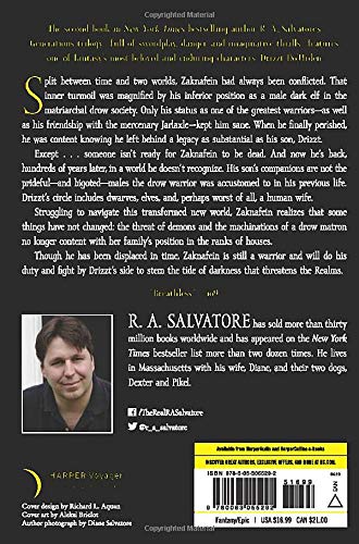 The second book in New York Times bestselling author R. A. Salvatores allnew trilogya rollicking a rollicking tale of swordplay, danger, and imaginative thrills, featuring one of fantasys most beloved and enduring characters, Drizzt DoUrden.When the legendary drow warrior Zaknafei finally perished, he was content knowing he left behind a legacy as substantial as his son, Drizzt.Except . . . someone wasnt ready for Zaknafein to be dead. Now hes back, hundreds of years later, in a world he does not recognize. His sons companions are not the pridefuland bigotedmales the dark elf was accustomed to in his previous life. Drizzts friends and companions includes dwarves, elves, and, perhaps worst of all, a human wife.Struggling to navigate this transformed new world, Zaknafein realizes that some things have not changed: the threat of demons and the machinations of a drow matron no longer content with her familys position in the ranks of houses.Though he has been displaced in time, Zaknafein is still a warrior. And no matter what prejudices he must overcome, he knows he will do his duty and fight by Drizzts side to stem the tide of darkness that threatens the Realms.