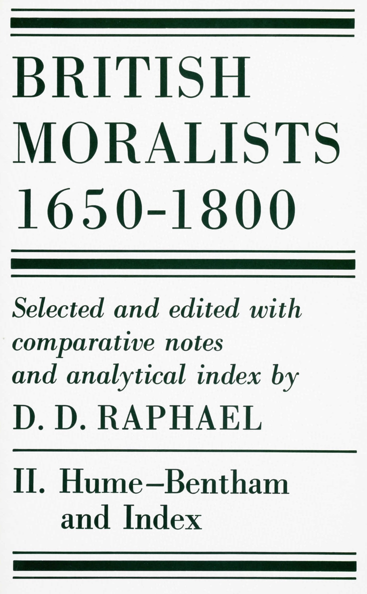 British Moralists: 16501800 (Volumes 2): Volume Ii: Hume Bentham, And Index,Used