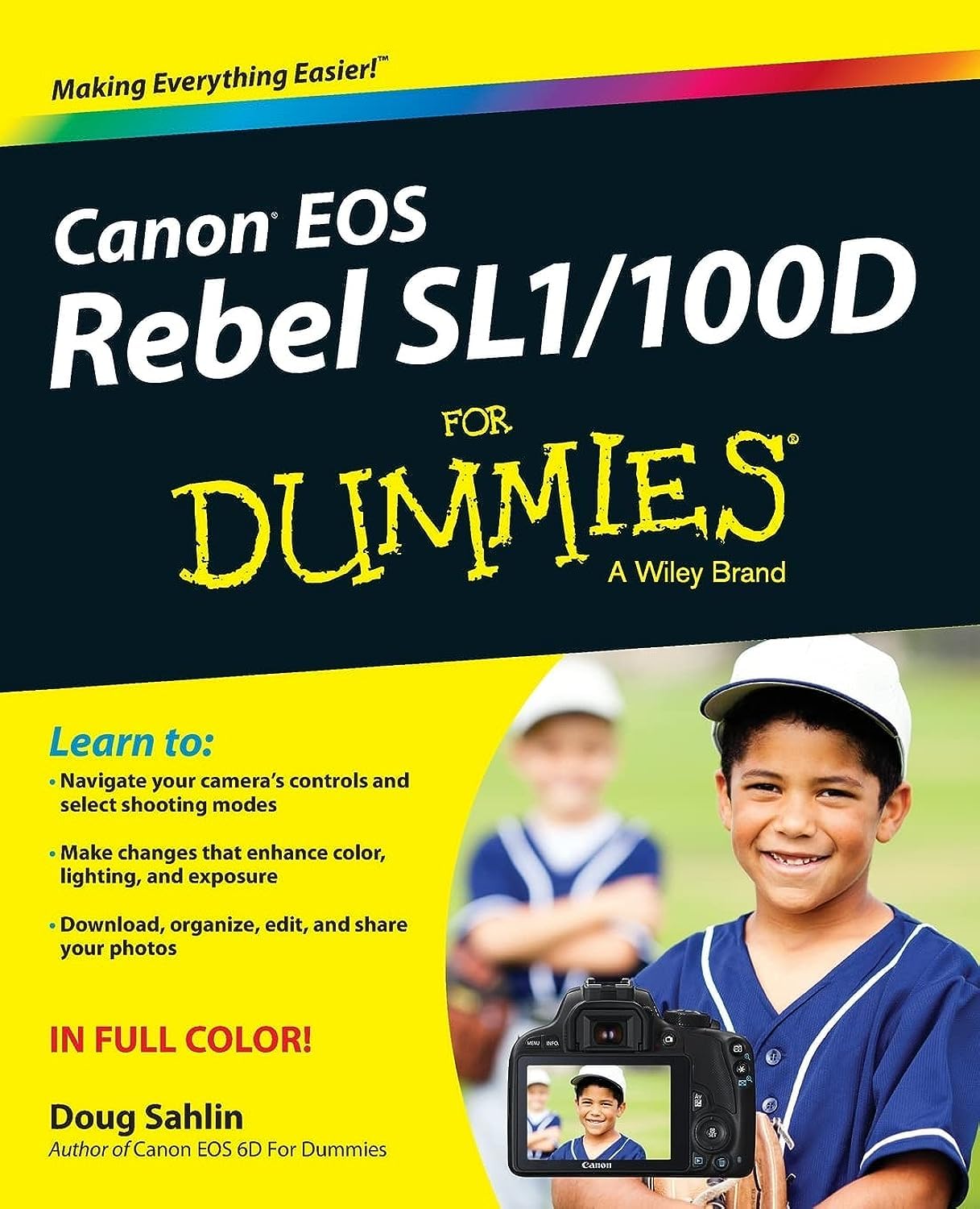 Get up to speed on your Canon SL1/100D and enter the world of dSLR photography!Canon's EOS Rebel SL1/100D is for photographers who prefer a smaller, lightweight camera that still offers heavyweight features. This fullcolor guide explains how to get better photos from an SL1. Written by professional photographer Doug Sahlin, this book explains the camera?s controls and shooting modes. It also shows how to take creative control by moving out of auto mode. You'll also learn how to manage and edit your images, shoot video, use autofocus, and get troubleshooting advice. Features a fullcolor format that shows you the camera controls and menus, explaining what each is for and how to use them all Demonstrates how to use the new autofocus feature, manage playback options, and shoot video Helps you graduate to manual mode and learn to control exposure, lighting, focus, and color Covers downloading, organizing, editing, and sharing photosCanon EOS Rebel SL1/100D For Dummies gives you the knowledge and confidence to make the move to dSLR photography using the Canon EOS Rebel SL1/100D, which is perfect for photographers who've been waiting for a smaller dSLR with big features.