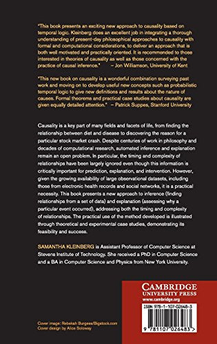 Causality is a key part of many fields and facets of life, from finding the relationship between diet and disease to discovering the reason for a particular stock market crash. Despite centuries of work in philosophy and decades of computational research, automated inference and explanation remains an open problem. In particular, the timing and complexity of relationships has been largely ignored even though this information is critically important for prediction, explanation, and intervention. However, given the growing availability of large observational datasets including those from electronic health records and social networks, it is a practical necessity. This book presents a new approach to inference (finding relationships from a set of data) and explanation (assessing why a particular event occurred), addressing both the timing and complexity of relationships. The practical use of the method developed is illustrated through theoretical and experimental case studies, demonstrating its feasibility and success.