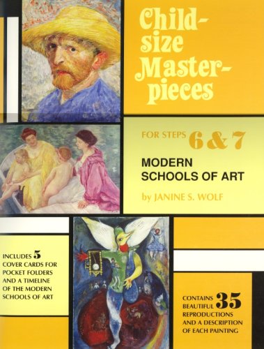 This supplemental set is designed to be used for Step 6 (Learning about the Schools of Art) and Step 7 (Grouping Paintings from the Same School of Art) of the ChildSize Masterpieces program. This volume will introduce children to five of the modern schools of art and some of the artists who are commonly associated with each style. Central to the ChildSize Masterpieces program this companion book contains highquality postcardsize reproductions of famous paintings. Selections have been chosen to appeal to young children, each reproduction is imprinted on the back with the artist name and the title of the painting, information about the medium, and includes an artist biography. Postcards are printed on heavy varnished cardstock. To make cards, cut out the 4 3/4' x 6 1/2' images, and laminate if desired. Modern Schools of Art includes: 35 Postcardsize reproductions (7 for each movement) 5 Information cards, one for each artistic movement (Impressionism, PostImpressionism, Cubism, Surrealism, and Abstract Art) Artists represented are: Renoir, Degas, Monet, Cassatt, Morisot, Pissarro, Manet, Matisse, Van Gogh, TaulouseLautrec, Bonnard, Seurat, Cezanne, Gauguin, R. Delaunay, Picasso, Duchamp, Braque, Drain, Gris, Leger, Chagall, Chirico, Klee, Miro, Magritte, Dali, Ernst, Mondrian, De Kooning, Kandinsky, Pollock, Stella, S. Delaunay, and Lichtenstein.
