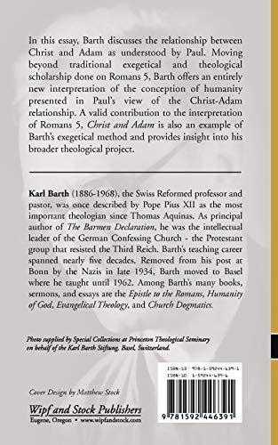 In this essay, Barth discusses the relationship between Christ and Adam as understood by Paul. Moving beyond traditional exegetical and theological scholarship done on Romans 5, Barth offers an entirely new interpretation of the conception of humanity presented in Paul's view of the ChristAdam relationship. A valid contribution to the interpretation of Romans 5, 'Christ and Adam' is also an example of Barth's exegetical method and provides insight into his broader theological project.