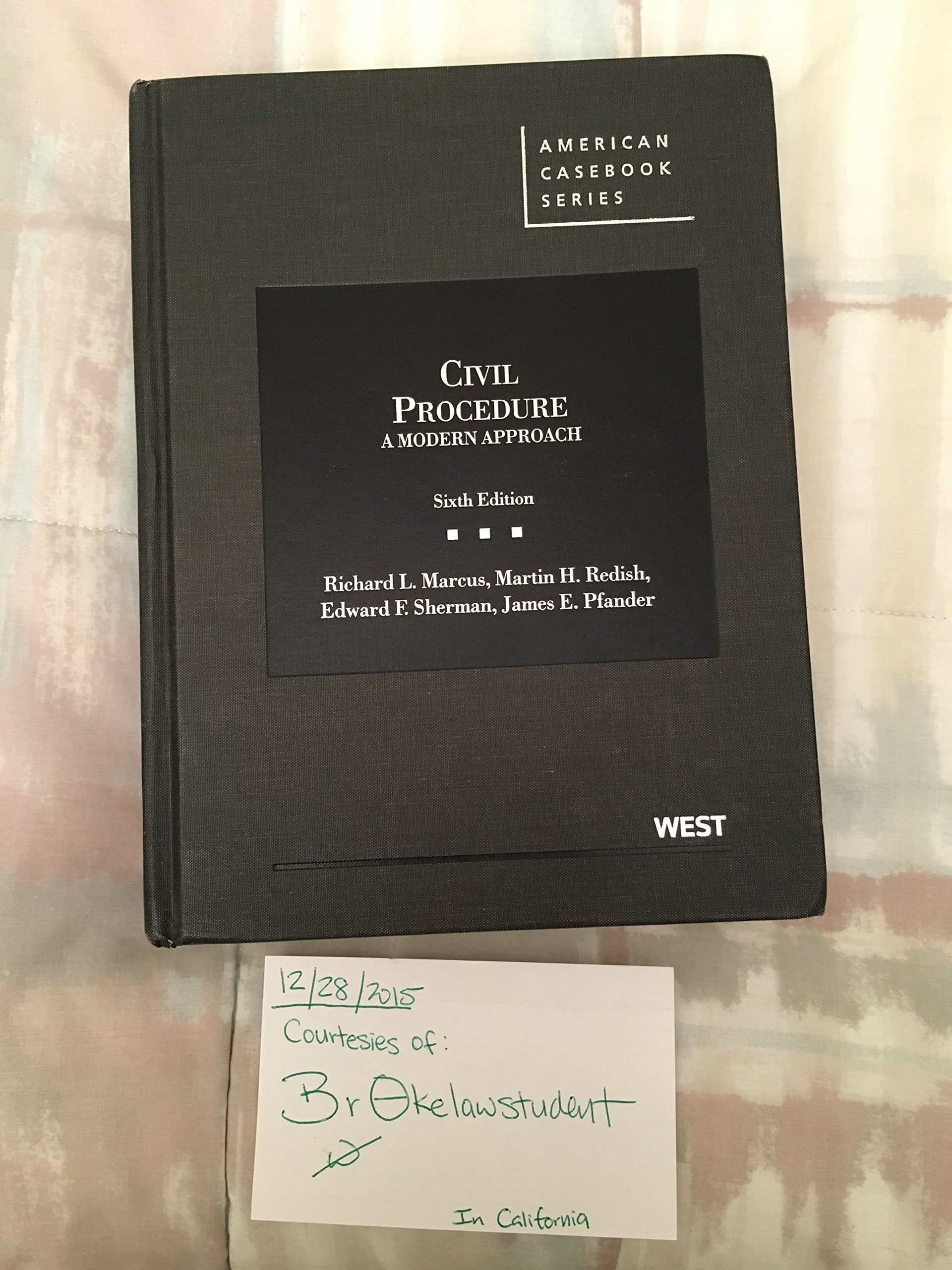 - Q: Who is the author of this textbook? A: 'Civil Procedure, A Modern Approach, 6th' is authored by Richard L. Marcus.