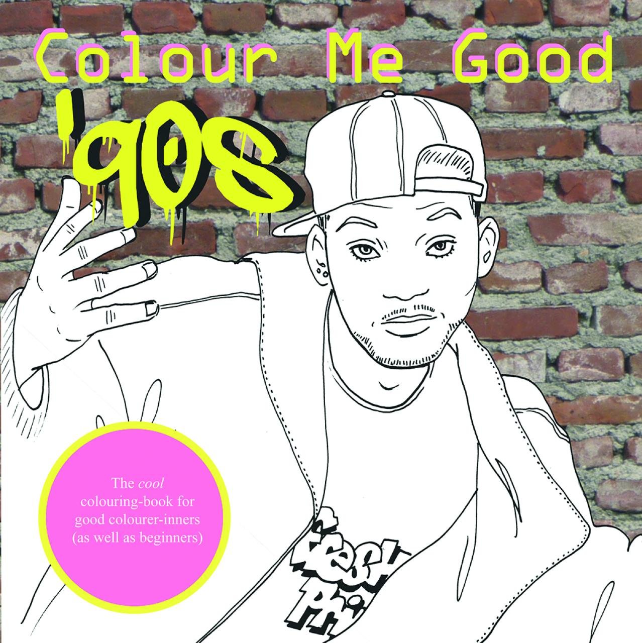 Grownup colouring book featuring drawings of '90s pop culture.