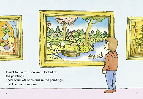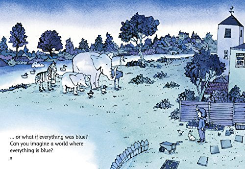 A simple text where a visit to an art show causes a girl to imagine what the world would be like if it was wholly yellow, red or blue. Realising that the world actually consists of all the colours of the rainbow, she paints lots of multicoloured pieces of art herself.