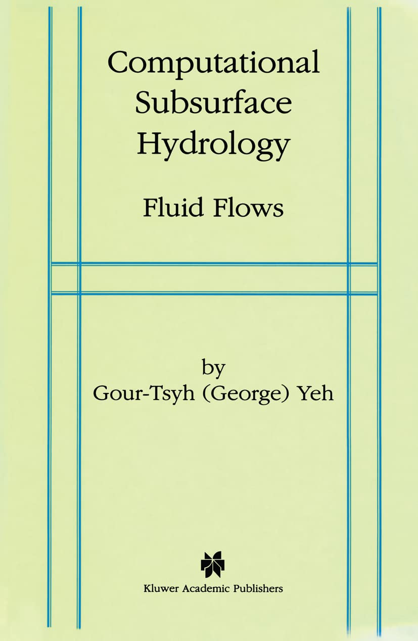 Computational Subsurface Hydrology: Fluid Flows offers practicing engineers and scientists a theoretical background, numerical methods, and computer codes for the modeling of fluid flows in subsurface media. It will also serve as a text for senior and graduate courses on fluid flows in subsurface media in disciplines such as civil and environmental engineering, agricultural engineering, geosciences, soil sciences, and chemical engineering.Computational Subsurface Hydrology: Fluid Flows presents a systematic derivation of governing equations and boundary conditions of subsurface fluid flow. It discusses a variety of numerical methods, expounds detailed procedures for constructing finite element methods, and describes precise implementation of computer codes as they are applied to subsurface flows.Four computer codes to simulate vertically integrated horizontal flows (FEWA), saturated flows with moving phreatic surfaces in three dimensions (3DFEWA), variably saturated flows in two dimensions (FEMWATER), and variable flows in three dimensions (3DFEMWATER) are attached to this book. These four computer codes are designed for generic applications to both research and practical problems. They could be used to simulate most of the practical, realworld field problems.If you would like a copy of the diskettes containing the four, basic general purpose computer codes referred to in Computational Subsurface Hydrology: Fluid Flows, please email GourTsyh Yeh at the following address : gyeh@mail.ucf.edu