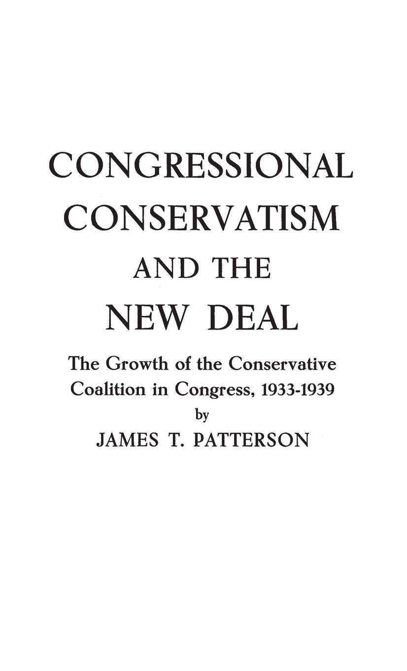 History faced by the disaster of depression, Congress in the early 1930s proved amenable to the farreaching demands and programs presented to it by the newly elected President, Franklin D. Roosevelt, but by 1937 it showed increasing resistance, even outright opposition, to many New Deal measures. In this study, James T. Patterson examines this resurgence of conservative strength in Congress, focusing upon the personalities and backgrounds of the men involved and upon the key domestic issues whi