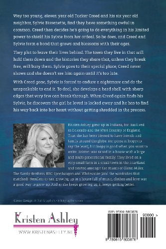 Way too young, eleven year old Tucker Creed and his six year old neighbor, Sylvie Bissenette, find they have something awful in common. Creed then decides hes going to do everything in his limitedpower to shield his Sylvie from her ordeal. So he does, and Creed and Sylvie form a bond that grows and blossoms with their ages.They plot to leave their lives behind. The town they live in that will hold them down and the histories they share that, unless they break free, will bury them. Sylvie goes to their special place, Creed never shows and she doesnt see him again until its too late.With Creed gone, Sylvie is forced to endure a nightmare and do the unspeakable to end it. To deal, she develops a hard shell with sharp edges that very few can break through. When Creed again finds his Sylvie, he discovers the girl he loved is locked away and he has to find his way back into her heart without getting shredded in the process.
