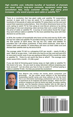 High monthly cost, inflexible bundles of hundreds of channels you never watch, longterm contracts, equipment rental fees, cancellation fees, lousy customer service, and yearly price increases why would anyone want cable or satellite TV?There is a revolution that has giant cable and satellite TV corporations worried. A major shift in how we watch TV is underway as each month hundreds of thousands of cable and satellite TV subscribers cut the cord and cancel their expensive subscriptions. Over 33 million Americans have cut the cord, opting to watch TV for free using an overtheair antenna or by taking advantage of lowcost streaming video services that cost a small fraction of the price of cable or satellite TV.In 2018, the number of households who have cut the cord rose by 32.8% with the top five cable and satellite TV providers losing 3.2 million subscribers. In the first quarter of 2019 alone, the top ten U.S. cable and satellite TV providers lost 1.28 million customers. If that trend continues, more than 5 million cable and satellite TV subscribers will have cut their cable cord and ditched their satellite dish by the end of 2019. By the end of 2019, 34% of Americans are expected to have cut their cable TV cord or ditched their satellite TV dish.61% of U.S. adults aged 18 to 29 and 37% aged 30 to 49 do not have cable or satellite TV and use online streaming services as their primary way to watch TV. 71% of cordcutters stated their reason for cutting the cord was the high cost of cable and satellite TV. A survey of cordcutters found the longer they went without cable or satellite TV, the more satisfied they were with their decision to cut the cord.The average cable TV bill is a whopping $107 per month nearly $1,300 a year! Most of us pay more. I will show you how to cut the cord and save $75 or more each month, even if you are paying as little as $100 a month for cable or satellite TV. Think its not worth the time or effort? The average cordcutter saves $104 a month $1,248 a year!Are you tired of throwing good money away on high cable or satellite TV bills? Do you want to enjoy television without emptying your bank account? Let me show you how to how to watch TV without paying a cable or satellite TV bill. Its time you joined the revolution!