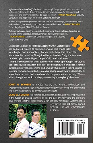 Since publication of his first book, HACKED AGAIN, Scott Schober has dedicated himself to educating anyone who would listen by telling his own story of being hacked in the hope that others can learn from his own mistakes. Now joined by his brother Craig, the two have set their sights on the biggest target of all, small businesses.There are 30 million small businesses currently operating in the United States. Some of them are single owner/operated while others collectively employ hundreds of millions. This book is for all of them and anyone who makes it their business to stay safe from phishing attacks, malware spying, ransomware, identity theft, major breaches and hackers who would compromise their security. We are all in this together which is why cybersecurity is everybody's business.Scott and Craig Schober examine a multitude of cybersecurity issues affecting all of us including:Cyber InsuranceInternet of ThingsState Sponsored Hacking and SpyingCard Skimmers & Identity TheftSocial EngineeringRansomwarePhishing AttacksVital Password CreationRobocallsCryptocurrencyVirtual Private NetworksScott and Craig Schober delve into the details of the latest cyber breaches that made headlines and continue to affect your small business and all consumers such as:Ashley Madison HackYahoo HackMarriott Hotel HackAnthem HackEquifax HackUber HackThroughout CYBERSECURITY IS EVERYBODY'S BUSINESS, Scott and Craig not only contextualize the impact of these cyberattacks on your small business and daily lives, but also provide expert insight and a plan of attack for fending off future security breaches. Through tips and advice gained since his last book, Scott offers hope in the everchanging world of cybersecurity.