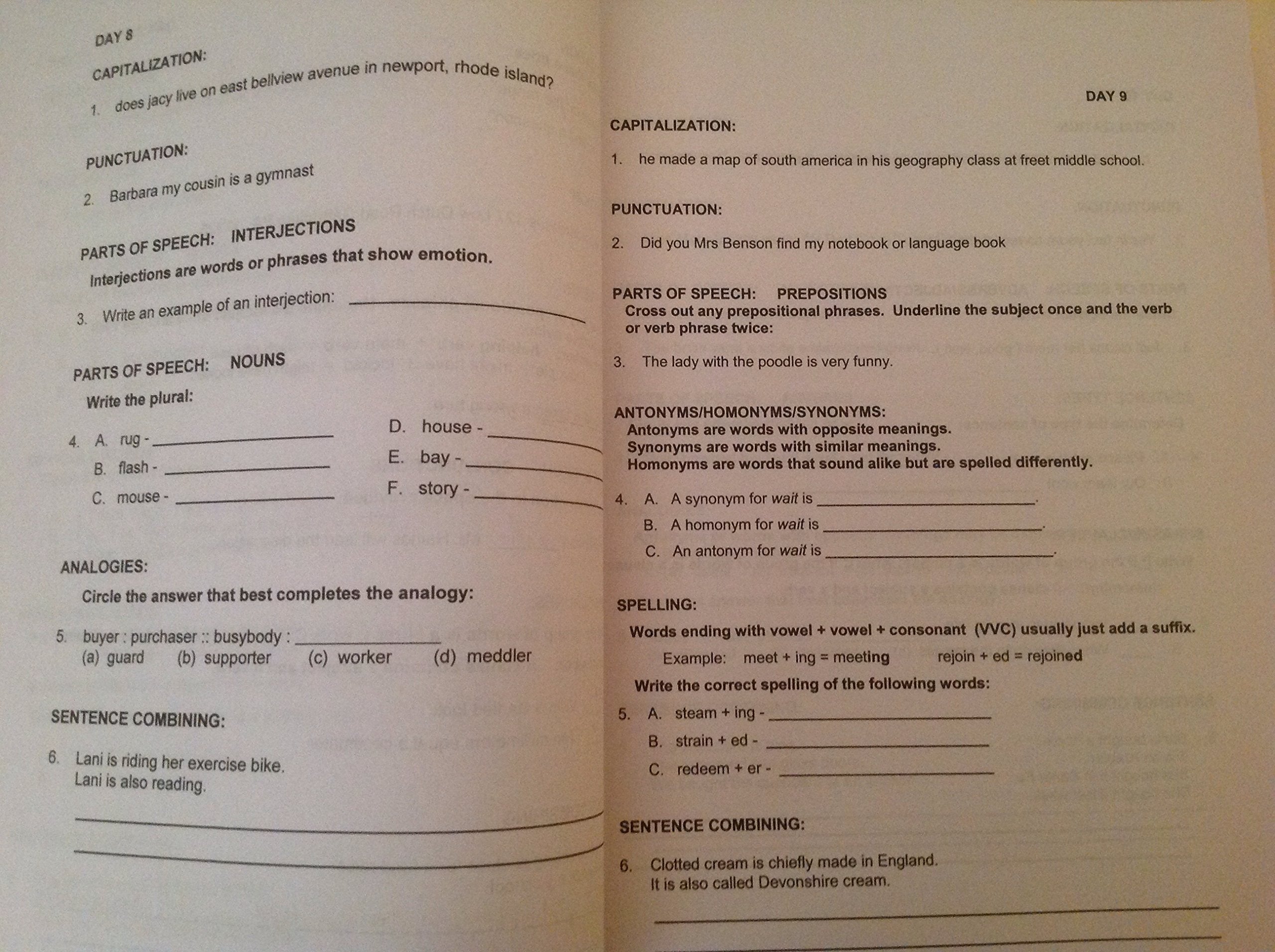 180 daily reviews: capitalization, punctuation, grammar and other concepts, and daily sentence combining