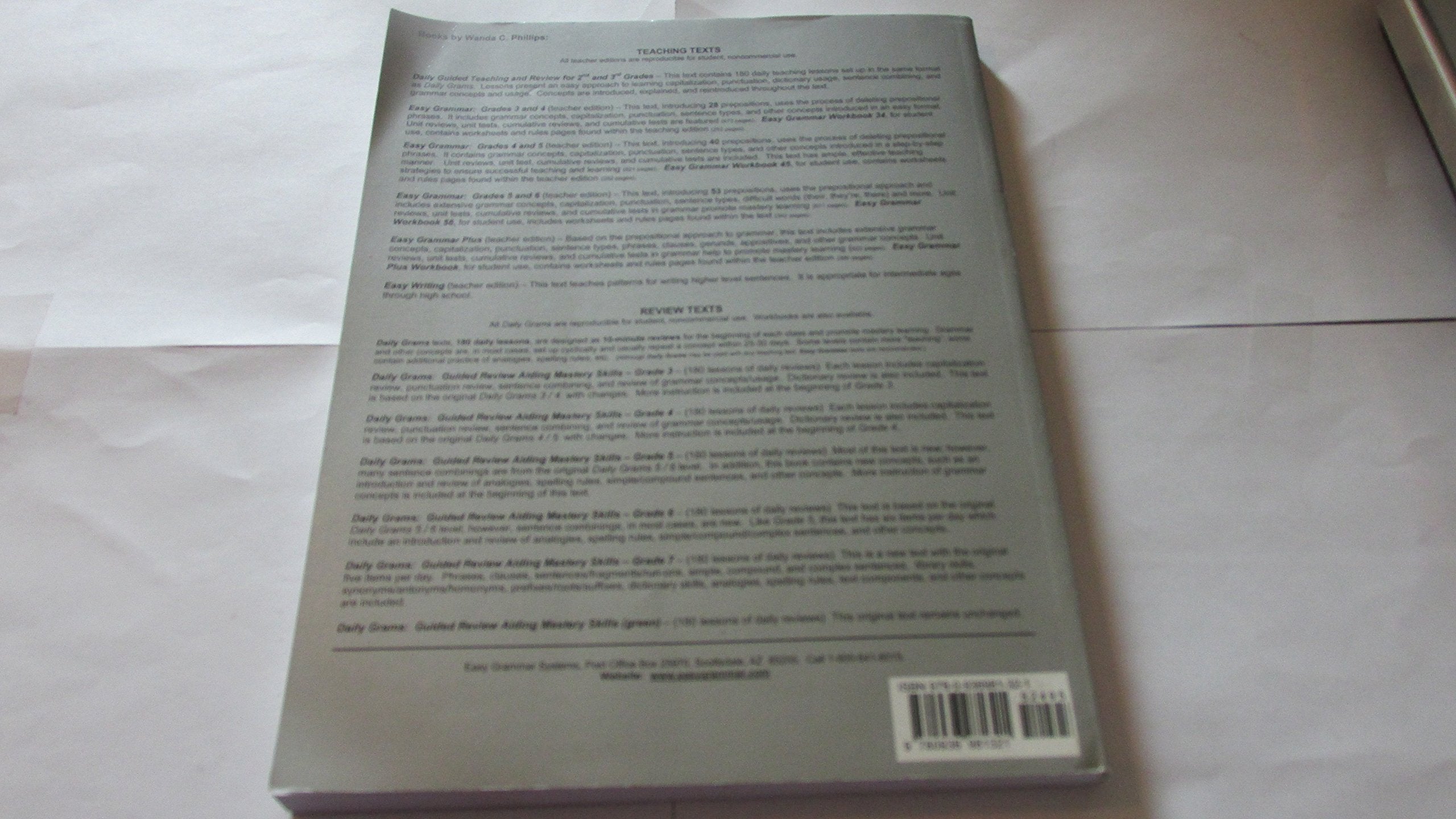 2002 [Easy Grammar Systems] Daily Grams: Guided Review Aiding Mastery Skills Grade 5 (P) By Wanda C. Phillips ***180 Daily Reviews: *Capitalization *Punctuation *Grammar And Other Concepts *Daily Sentence Combining ***Isbn13: 9780936981321 ***180 Pages