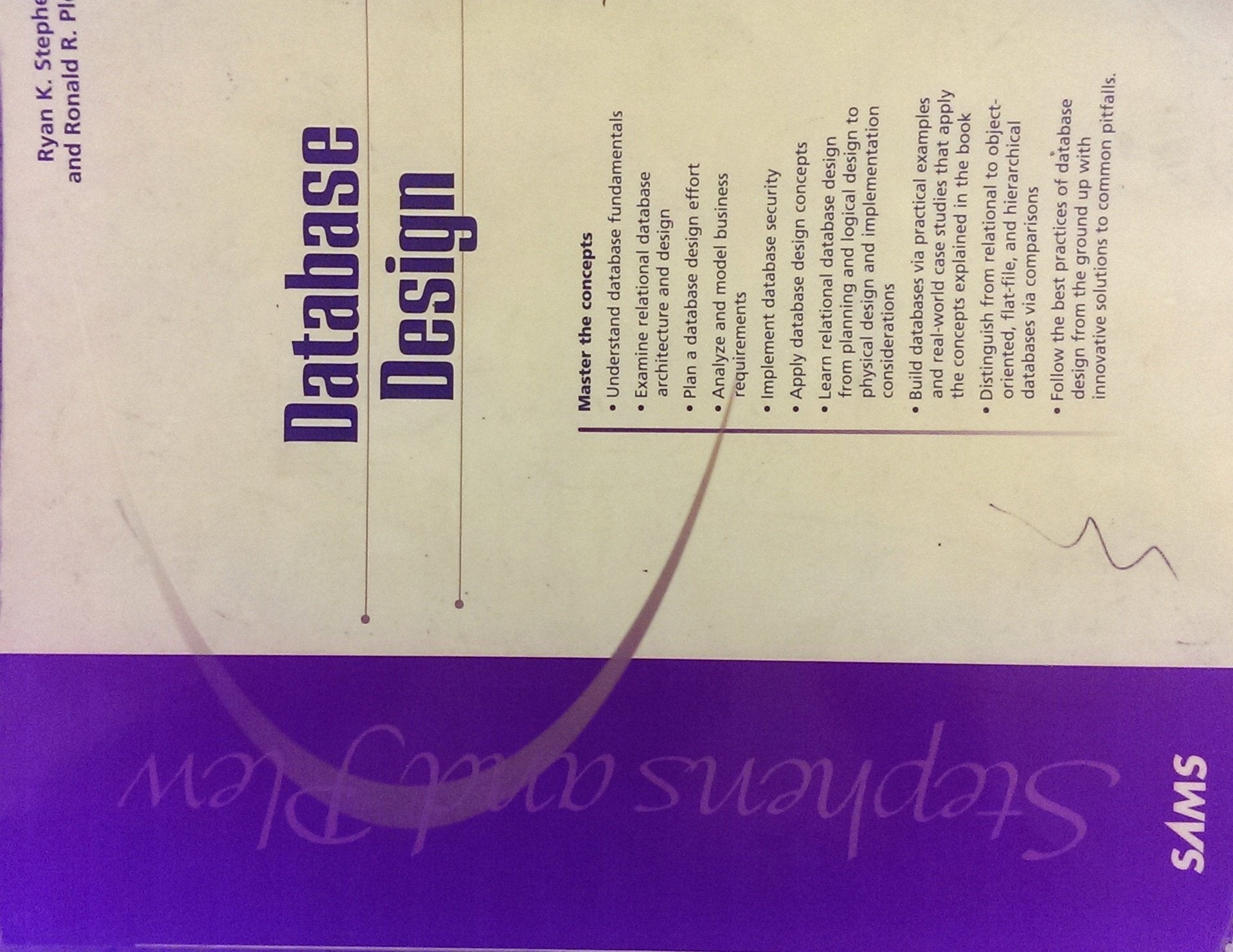 Database Design Is The Book You Need To Master The Fundamentals Of Relational Database Design In Today'S Everevolving World Of Database Technologies. This Book Takes An Approach To Database Design To Teach The Reader How To Reach Into The Inner Depths Of An Organization To Understand The Business Needs, Data, And Daily Processes That Will All Blend Together To Formulate A Successful Database. Much Emphasis Is Placed On Logical Design As It Is Imperative To Understand The Inner Workings Of An Organization To Produce The Highest Quality Database, While Proactively Eliminating Future Problems That Are Not So Easy For A Beginner To Foresee.Additionally, Topics Such As Change Control, Business Rule Integration, Database Security Implementation, And Legacy Database Redesign Are Covered In Detail. Examples Of Sql Code Are Shown To Portray Implementation Tasks Of A Relational Database. Examples Are Compliant With Ansi Standard.