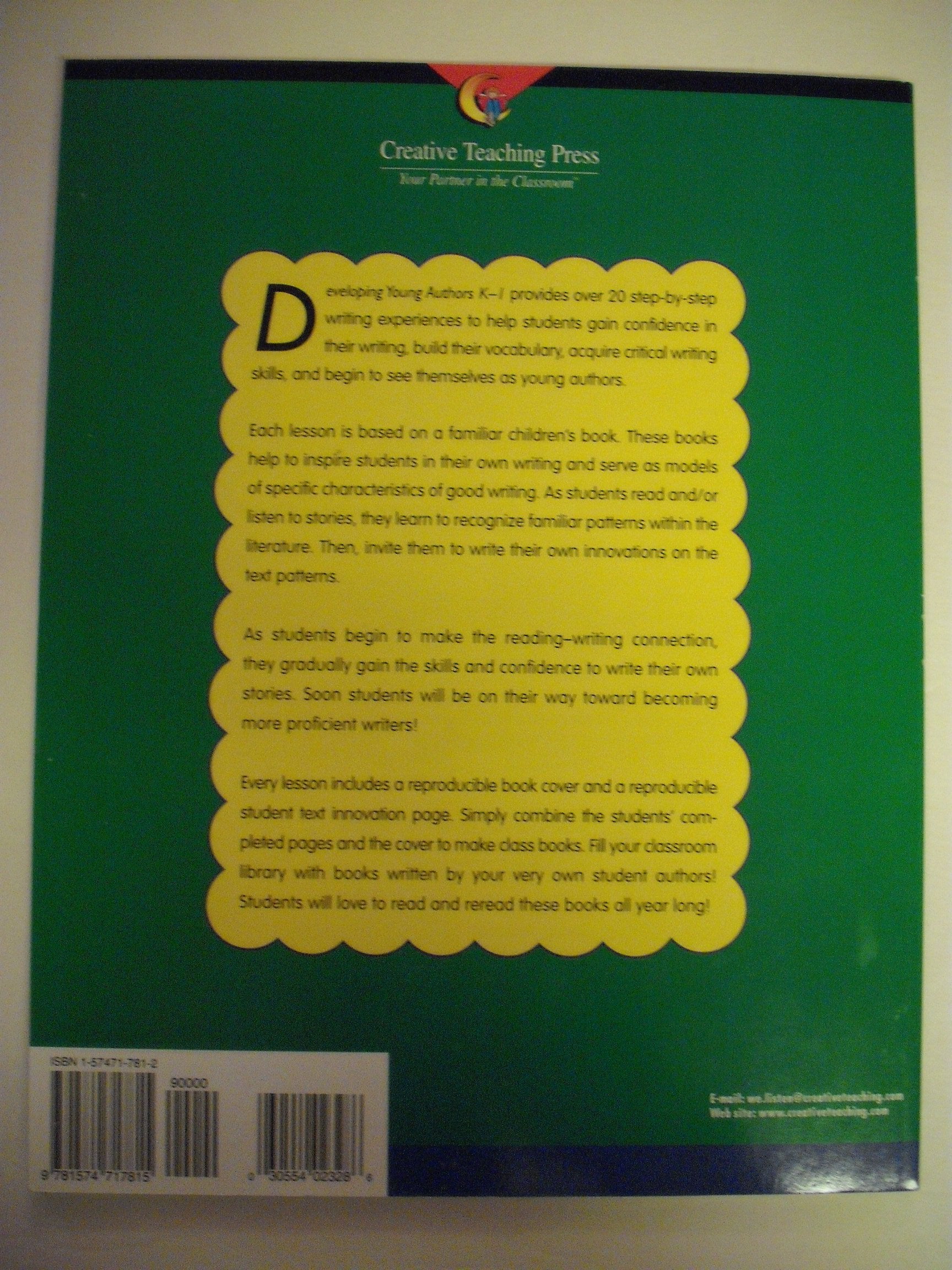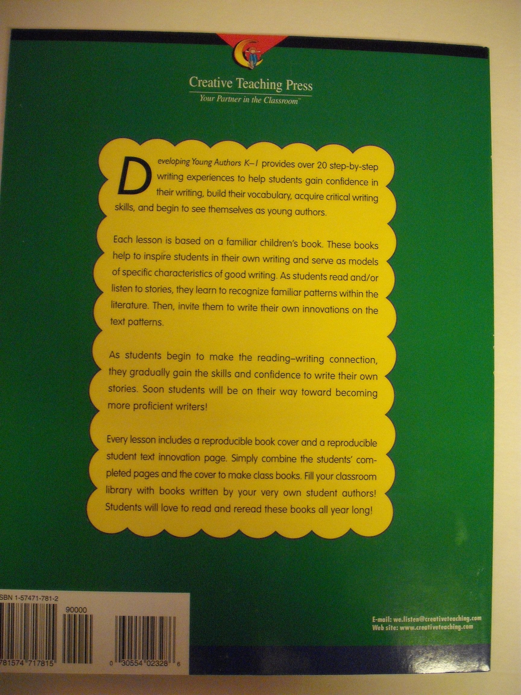 Using Favorite Literature to Model Good Writing. This resource guide contains over 20 stepbystep writing experiences to help students gain confidence in their writing, build their vocabulary, acquire critical writing skills, and begin to see themselves as young authors. Each lesson is based on a familiar children's book. As students read and/or listen to stories, they learn to recognize familiar patterns within the literature. Every lesson includes a reproducible book cover and a reproducible student text innovation page that result in a classmade book. Fill your classroom library with books written by your very own student authors! Students will love to read and reread these books all year long! 80 pages each.