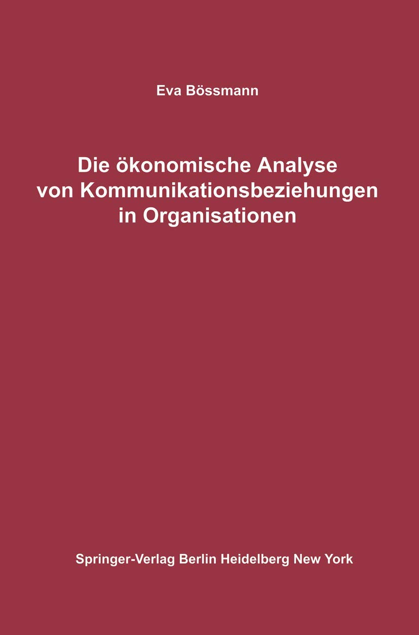 Die Konomische Analyse Von Kommunikationsbeziehungen In Organisationen (German Edition),Used