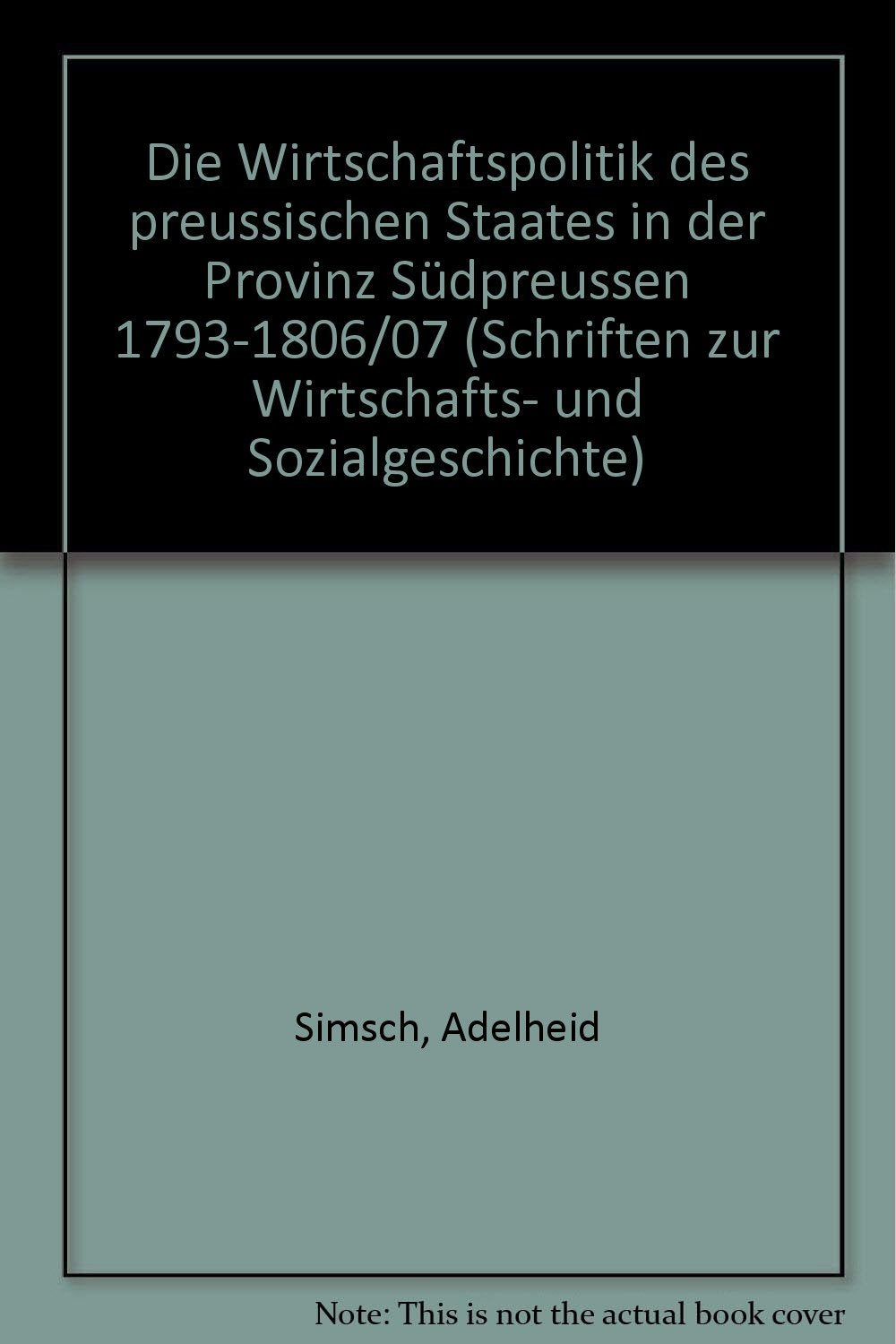 Die Wirtschaftspolitik Des Preussischen Staates in Der Provinz Sudpreussen 1793 1806/07 (Schriften Zur Wirtschafts Und Sozial,Used