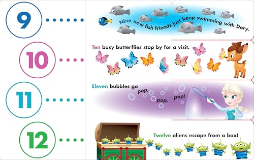 This flap book introduces little ones to their numbers in a delightfully Disney way!With a padded cover, sturdy board pages, 20 flaps, and a cast of Disney characters, this unique flap book introduces little ones to numbers and counting in a delightfully Disney way!