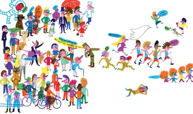 The guard always follows the general's orders without question. This time, the order is that no one must cross the line! The righthand page of this book must be kept blank for the general. As the crowd builds up on the border, the guard is under pressure. If no one is allowed onto the next page, what will happen to the story?And then a ball bounces across the line . . .This slapstick postmodern tale is also a profound statement about dictatorship and peaceful revolution, from an awardwinning author/illustrator team.