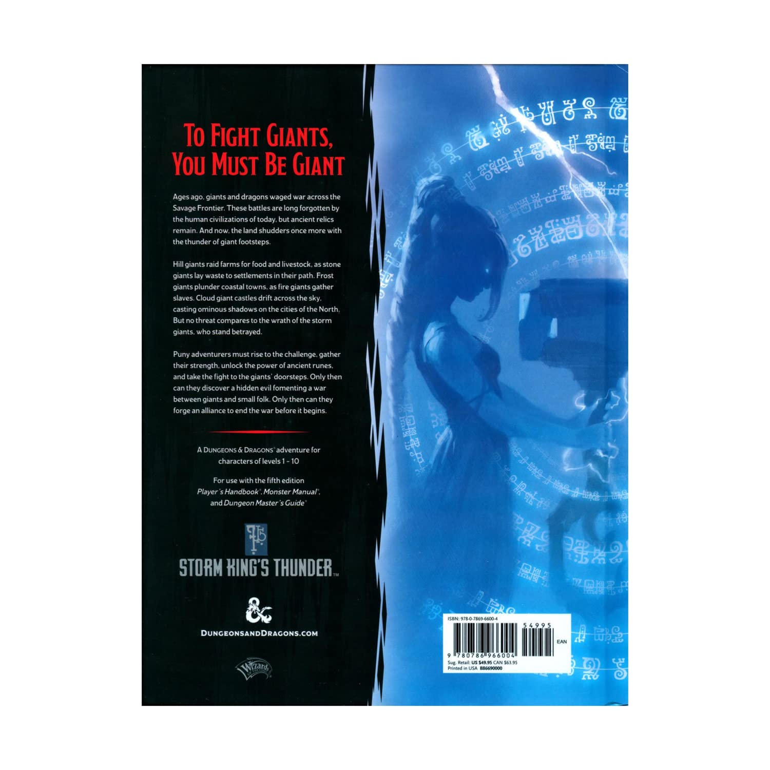 Take A Stand Against The Giants In This Adventure For The Worlds Greatest Roleplaying Gamegiants Have Emerged From Their Strongholds To Threaten Civilization As Never Before. Hill Giants Are Stealing All The Grain And Livestock They Can While Stone Giants Have Been Scouring Settlements That Have Been Around Forever. Fire Giants Are Pressganging The Smallfolk Into The Desert, While Frost Giant Longships Have Been Pillaging Along The Sword Coast. Even The Elusive Cloud Giants Have Been Witnessed, Their Wondrous Floating Cities Appearing Above Waterdeep And Baldurs Gate. Where Is The Storm Giant King Hekaton, Who Is Tasked With Keeping Order Among The Giants?The Humans, Dwarves, Elves, And Other Small Folk Of The Sword Coast Will Be Crushed Underfoot From The Onslaught Of These Giant Foes. The Only Chance At Survival Is For The Small Folk To Work Together To Investigate This Invasion And Harness The Power Of Rune Magic, The Giants Weapon Against Their Ancient Enemy The Dragons. The Only Way The People Of Faerun Can Restore Order Is To Use The Giants Own Power Against Them.To Defeat Giants, You Need To Be Giant!