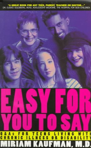 Everyday, thousands of teens have to cope with the problems arising from their chronic conditions. Easy for Your to Say, is a collection of questions and answers that will prove helpful especially for those with special needs.