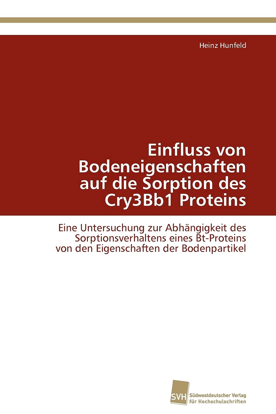 Der Anbau von gentechnisch vernderten Pflanzen hat in den letzten Jahren weltweit zugenommen. Eine wichtige gentechnische Vernderung ist die Insektenresistenz. Insektenresistente Pflanzen exprimieren CryProteine, die ursprnglich aus diversen Bacillus thuringiensis Subspezies stammen. CryProteine aus diesen BtPflanzen gelangen aus Ernterckstnden oder ber Wurzelexsudate in die Bden der Anbauflchen und knnen dort sorbiert werden. Der Einfluss der Bodeneigenschaften auf die Sorption von CryProteinen wurde bislang wenig untersucht. Das Ziel der hier vorgestellten Untersuchung ist es, die fr die Sorption des Cry3Bb1 Proteins verantwortlichen chemischen und physikalischen Eigenschaften ausgewhlter Bden zu identifizieren. Zu diesem Zweck wurden Sorptionsisothermen aufgenommen und die Ergebnisse dieser Experimente mit den Eigenschaften der Bodenpartikel abgeglichen. Verwendet wurden Bodenproben einer Freisetzungsflche und feldrelevante Konzentrationen des Cry3Bb1 Proteins. Zudem wurde der Einfluss des pHWertes und der Begleitelektrolytkonzentration auf die Sorption, sowie die Desorbierbarkeit der gebundenen CryProteine untersucht.