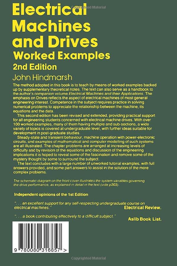 Containing approximately 200 problems (100 worked), the text covers a wide range of topics concerning electrical machines, placing particular emphasis upon electricalmachine drive applications. The theory is concisely reviewed and focuses on features common to all machine types. The problems are arranged in order of increasing levels of complexity and discussions of the solutions are included where appropriate to illustrate the engineering implications. This second edition includes an important new chapter on mathematical and computer simulation of machine systems and revised discussions of unbalanced operation, permanentmagnet machines and universal motors. New worked examples and tutorial problems have also been added.
