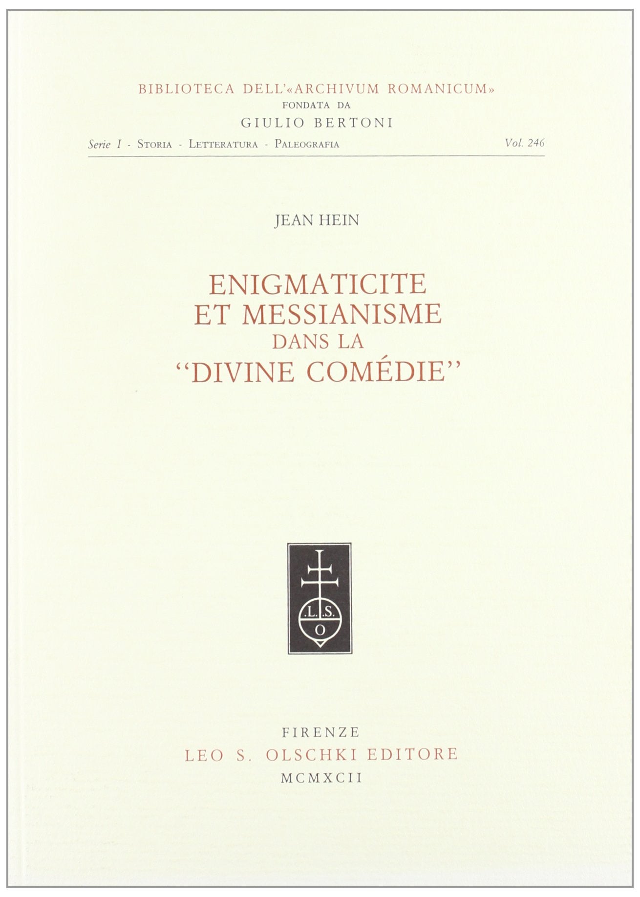Enigmaticit Et Messianisme Dans La Divine Comdie (Biblioteca Dell'archivum Romanicum. I: Storia, Letteratura, Paleografia, 2,Used