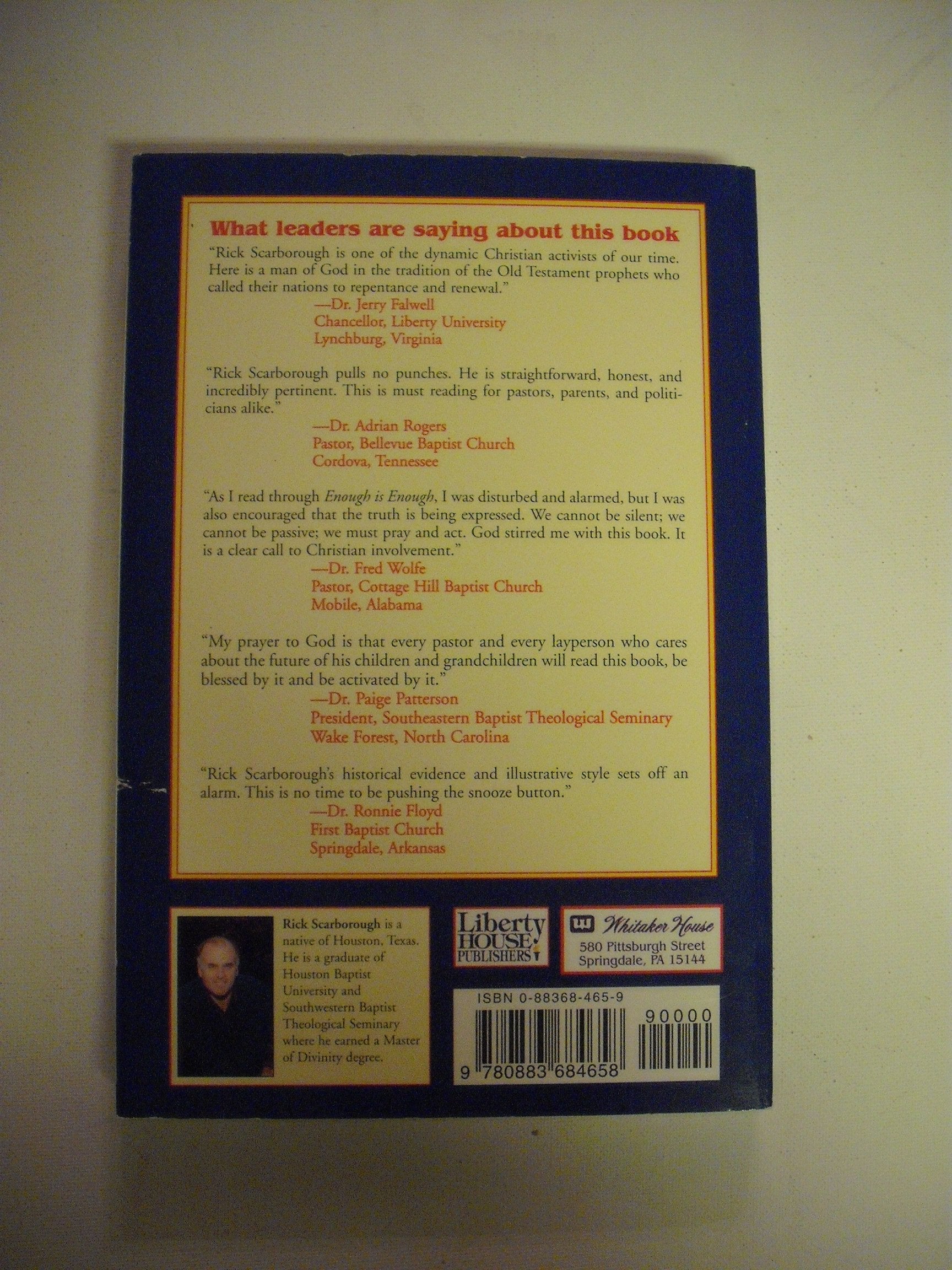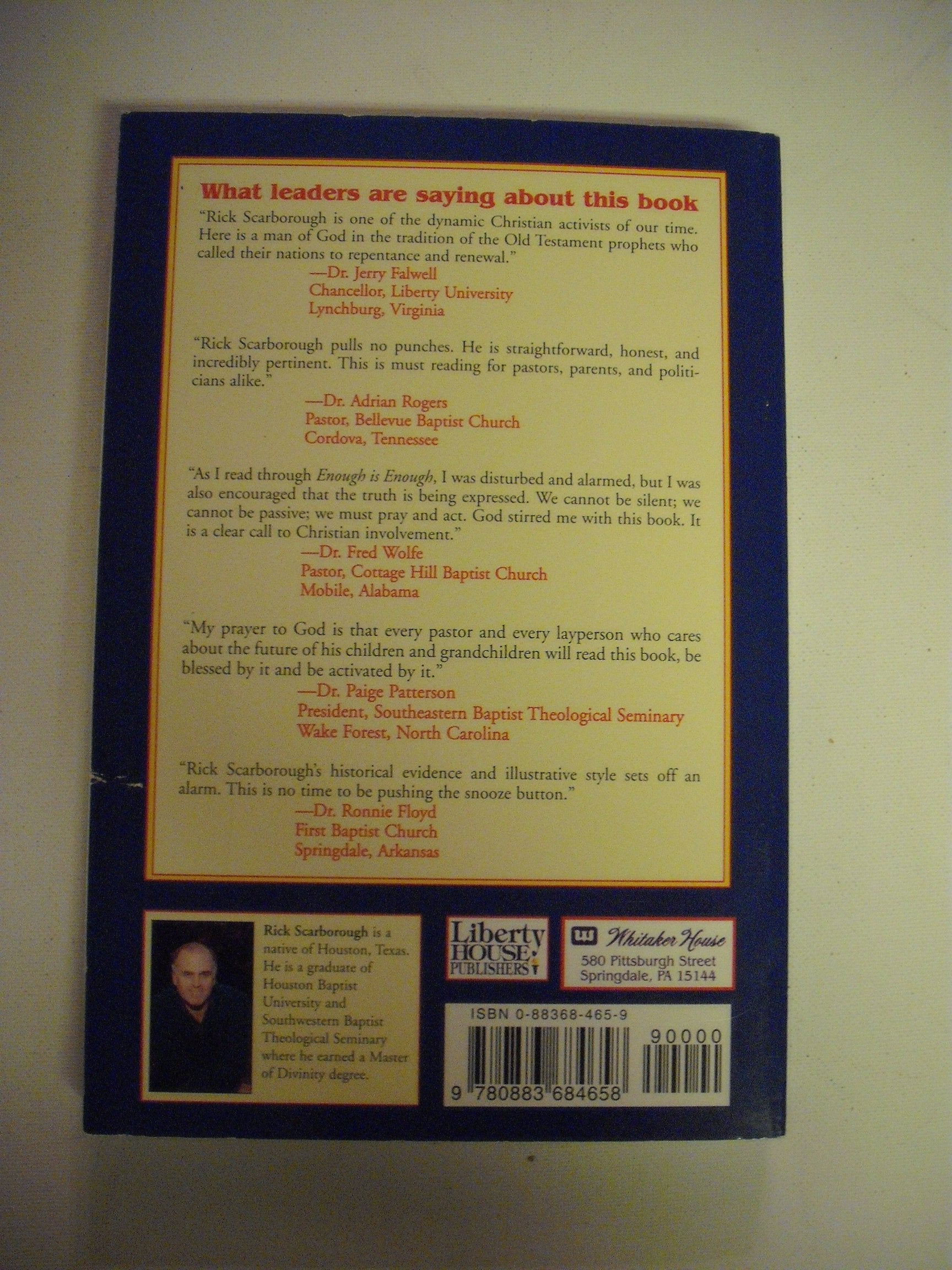 ENOUGH IS ENOUGH This book is used, with very slight coverwear. The pages, otherwise, are in like new condition. There are no markings, writing or highlighting. There is no remainder mark.