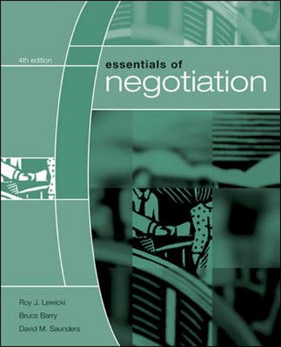 ESSENTIALS OF NEGOTIATION, 4e is a short paperback derivative from the main text, NEGOTIATION, 5e. It explores the major concepts and theories of the psychology of bargaining and negotiation, and the dynamics of interpersonal and intergroup conflict and its resolution. Fourteen of the 20 chapters from the main text have been included (about half have been shortened by about 1/3) for this volume. Chapters are shortened by removing more 'academic' material and some of the boxes. This effectively leaves the message and theories of negotiation intact.