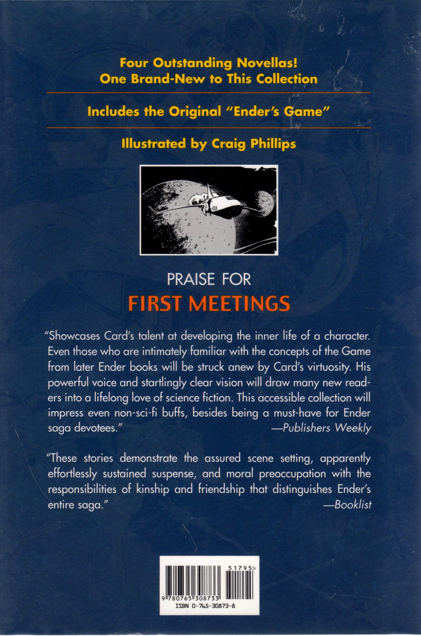 Welcome to the Enderverse.When 'Ender's Game' was first published as a novella twentyfive years ago few would have predicted that it would become one of the most successful ventures in publishing history. Expanded into a novel in 1985, Ender's Game won both the Hugo Award and the Nebula Award for Best Novel. Never out of print and translated into dozens of languages, it is the rare work of fiction that can truly be said to have transcended a genre. Ender's Game and its sequels have won dozens of prestigious awards and are as popular today among teens and young readers as adults.First Meetings is a collection of three novellasplus the original 'Ender's Game'that journey into the origins and the destiny of one Ender Wiggin.'The Polish Boy' begins in the wake between the first two Bugger Wars when the Hegemony is desperate to recruit brilliant military commanders to repel the alien invasion. In John Paul Wigginthe future father of Ender they believe they may have found their man. Or boy.In 'Teacher's Pest'a novella written especially for this collectiona brilliant but insufferably arrogant John Paul Wiggin, now an American university student, matches wits with an equally brilliant graduate student named Theresa Brown.It is many years since the end of the Bugger Wars in 'The Investment Counselor.' Ender's reputation as a hero and savior has suffered a horrible reversal. Banished from Earth and slandered as a mass murderer, twentyyearold Andrew Wiggin wanders incognito from planet to planet as a fugitive. Until a blackmailing tax inspector compromises his identity and threatens to expose Ender the Xenocide.Also reprinted here is the original landmark novella, 'Ender's Game,' which first appeared in 1977.Fully illustrated, First Meetings f0is Orson Scott Card writing at the height of his considerable power about his most compelling character.